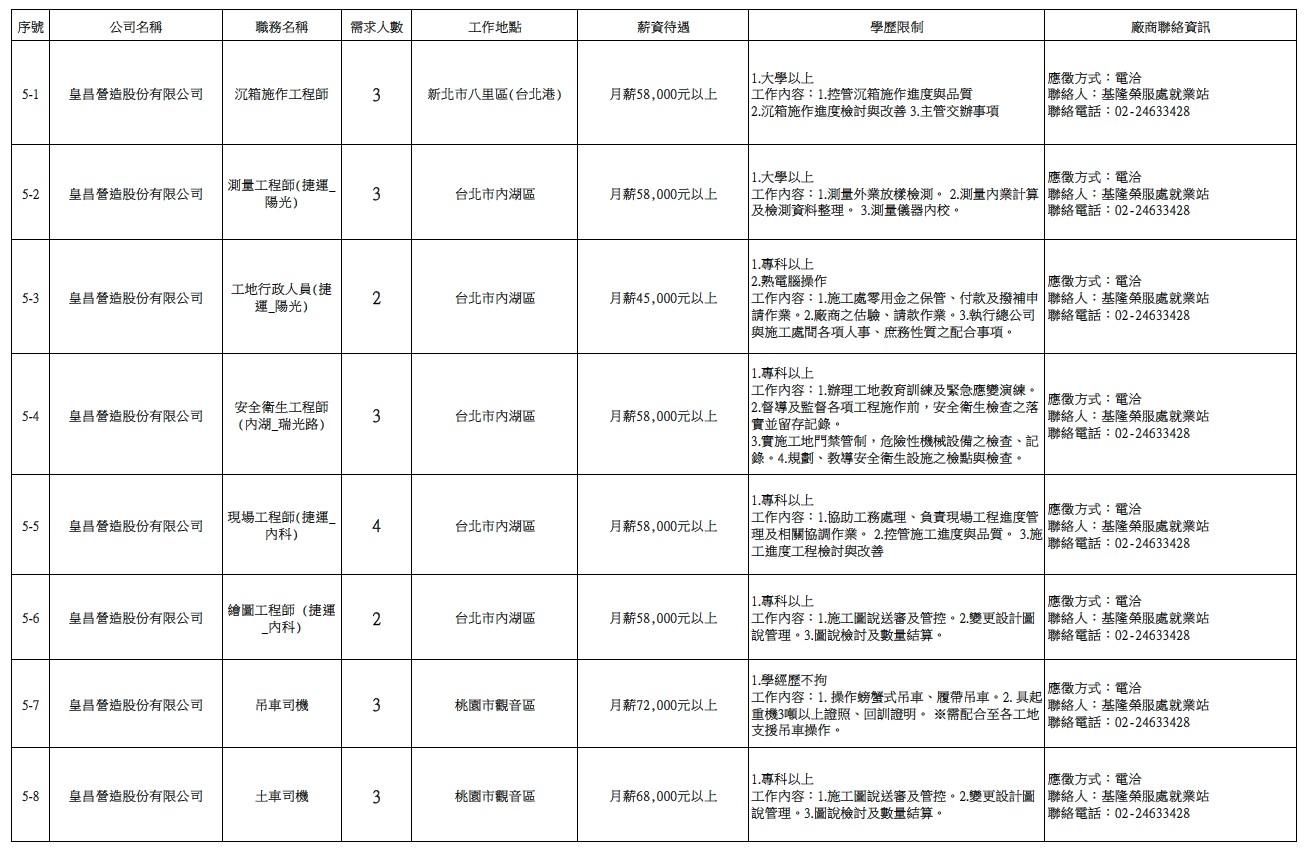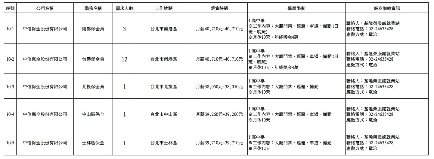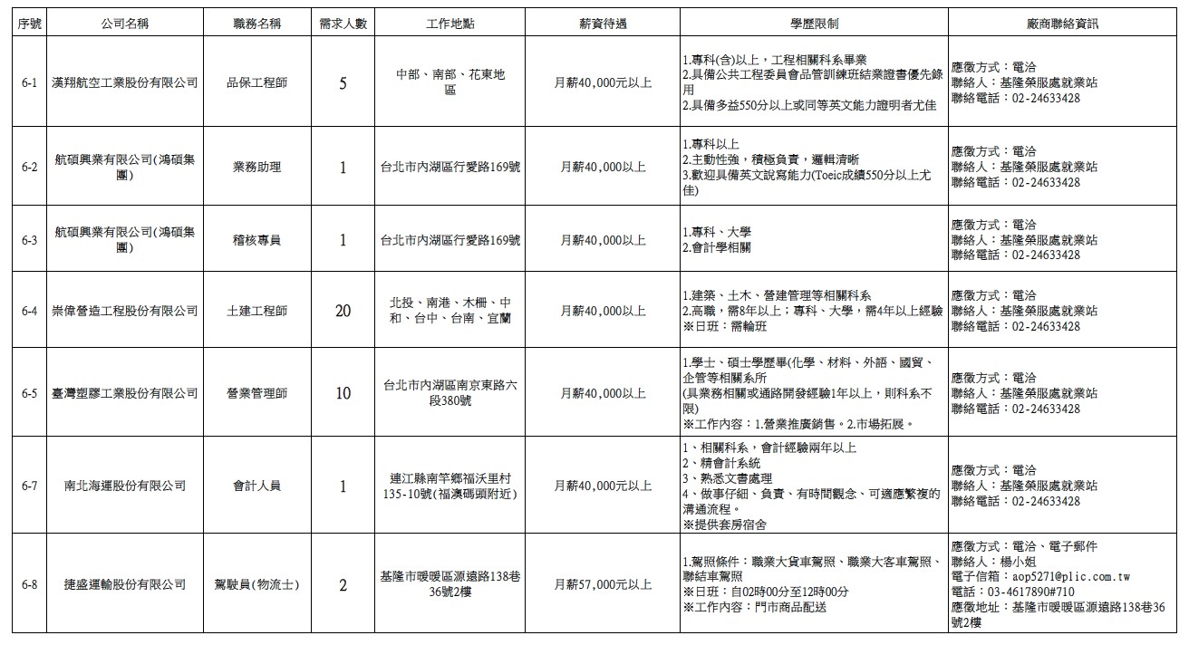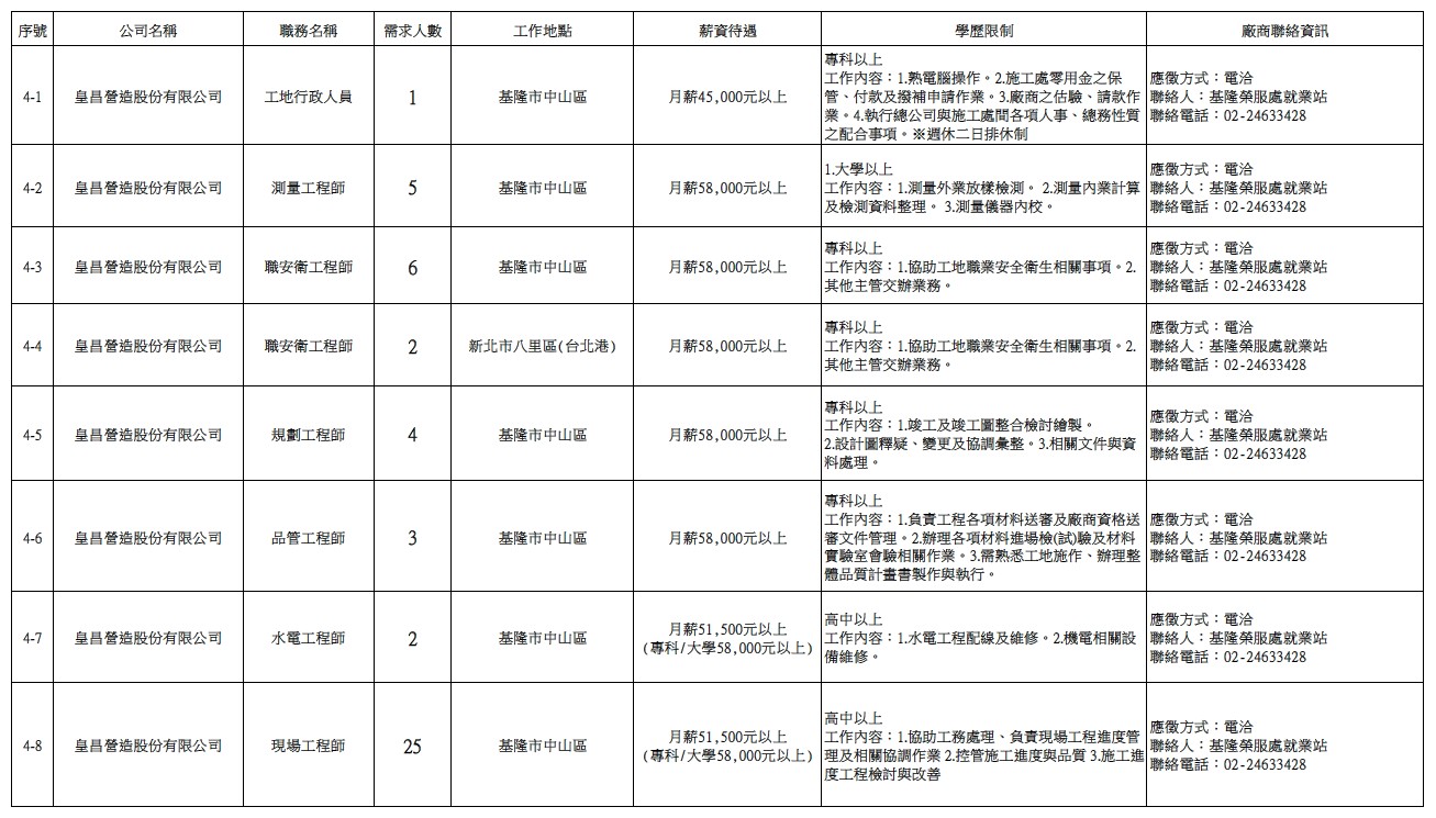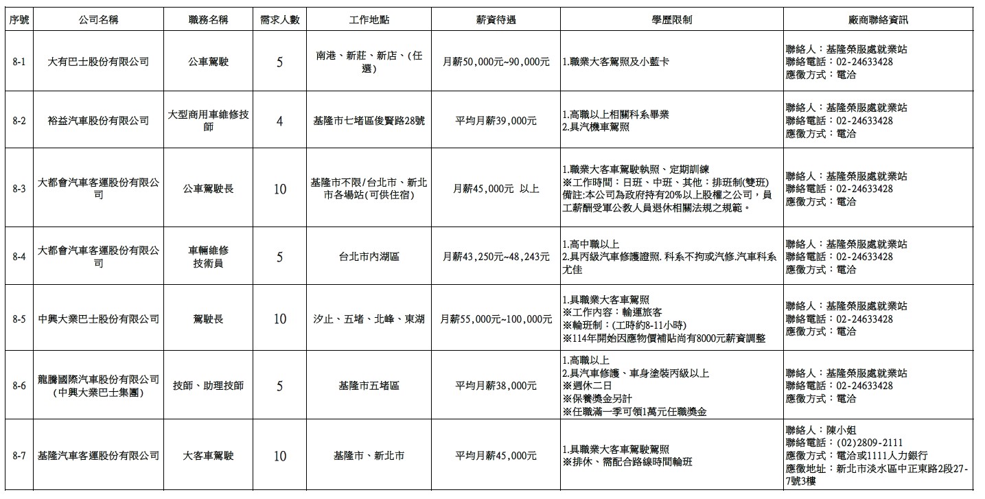【基隆市榮服處】廠商職缺表(115.04.07)-1