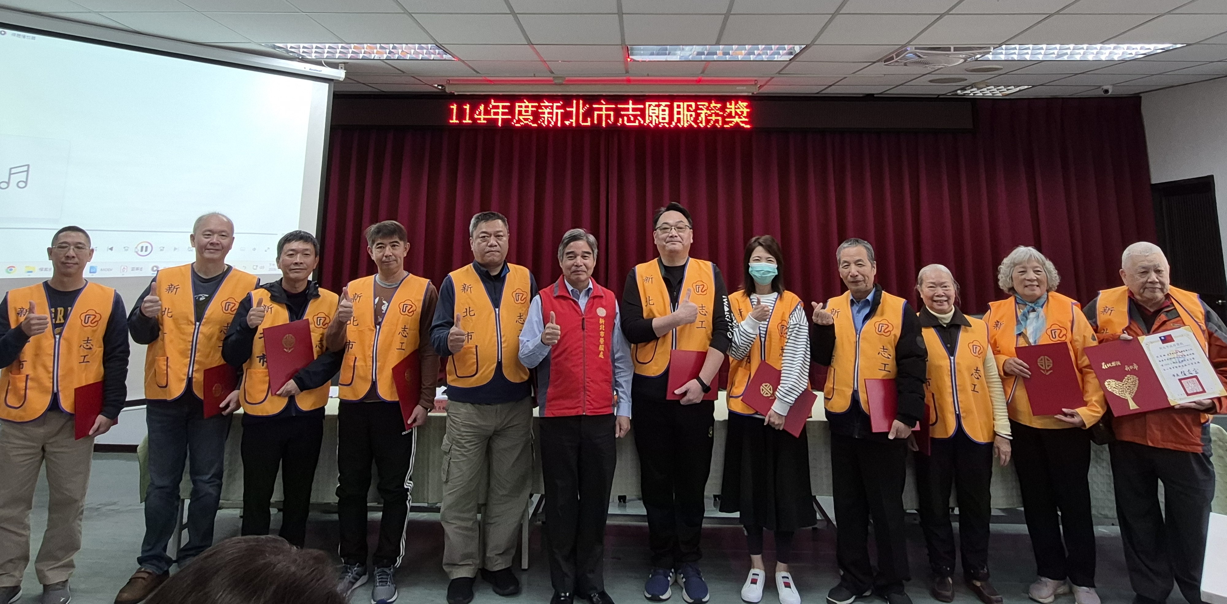 新北市榮民服務處今(13)日召開榮欣志工聯繫會報,由處長林振生主持,會中轉頒114年度衛生福利部志願服務獎勵,表揚27位榮欣志工榮獲2金、12銀、13銅佳績,展現長期投入志願服務的成果。 榮服處指出,該獎勵須累積長時數志願服務,金、銀、銅牌分別需達8,000、5,000及3,000小時,得獎實屬不易。新北榮欣志工平日深入社區,投入訪視關懷、送餐服務、陪同就醫及居家修繕等多元服務,以實際行動回應榮民眷生活所需,是第一線照顧工作的重要力量。 除中央獎項外,會中亦頒發「114年度新北市志願服務獎勵」,共有24位志工獲獎,包括金心獎14位、銀心獎3位及銅心獎7位。此外,新店北區榮欣志工隊於榮民眷關懷、就業及就學協助等面向表現優異,榮獲「114年輔導會績優志工隊」殊榮,隊長卓旻瑤並代表回贈榮譽獎牌,感謝榮服處的支持與培力。 林振生處長肯定志工夥伴的熱忱與無私奉獻,並表示未來將持續強化志工培訓與運用,深化社區服務量能,共同建構溫暖、安全的在地照顧網絡。 相關照片