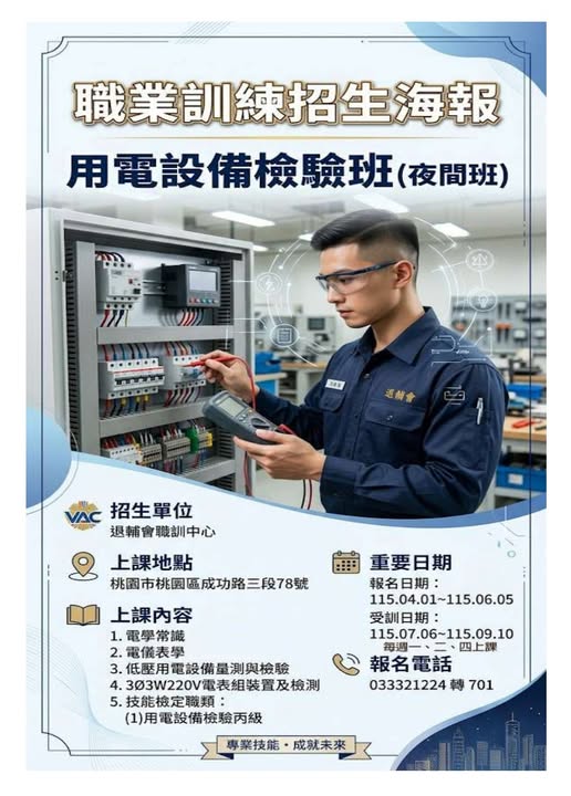 🔌用電設備檢驗班(夜間班)增班開跑啦!