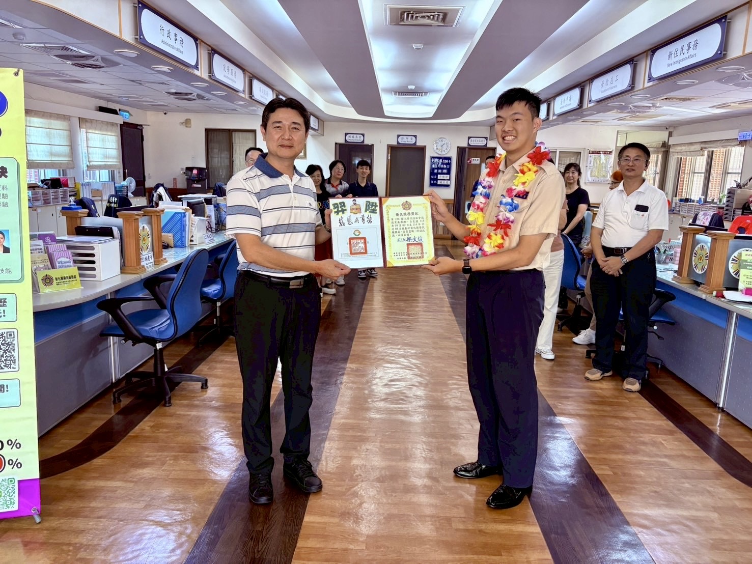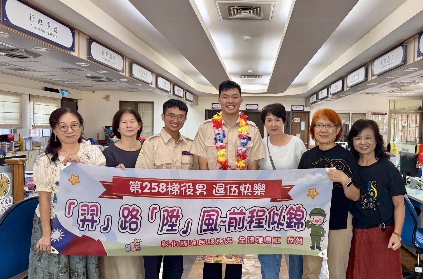 光陰荏苒,轉眼一年兩個月的服役時光圓滿落幕。第258梯替代役男——吳羿陞於今日正式退伍。自113年9月16日分發至彰化縣榮民服務處以來,羿陞以誠懇踏實、責任感強的態度投入各項服務工作,陪伴處內同仁度過忙碌又溫馨的日子,成為全體同仁心中印象深刻的夥伴。 值得一提的是,羿陞是近年來彰化縣榮服處第一位服滿一年兩個月役期的替代役男。在服役期間,他先後見證五位役男退伍的歷程,也一步步從新進役男成長為可靠的行政助手,協助完成多場志工活動、搬運物資、文件整理及外勤支援任務,表現穩健、態度謙遜,深受同仁肯定與喜愛。 退伍典禮由邱文俊處長親自主持,並頒贈「退伍令」及「優良服務獎狀」,以表彰羿陞一年兩個月以來的努力與貢獻。邱處長致詞時表示,羿陞在服務期間不僅主動積極,對待長輩與同仁皆以禮相待、態度誠懇,是一位值得信賴的好夥伴。雖服役時間僅一年兩個月,但他以實際行動展現替代役「服務為榮」的精神,足為後續役男楷模。 在溫馨歡樂的氣氛中,全體職員工共同獻上祝福,感謝羿陞這段期間的陪伴與努力,並與處長合影留念。榮服處同仁紛紛表示,雖然不捨他即將離開,但更祝福他在人生的新階段中「羿路陞風、前程似錦」,繼續帶著笑容與熱忱,勇敢迎向未來的挑戰。 相關照片
