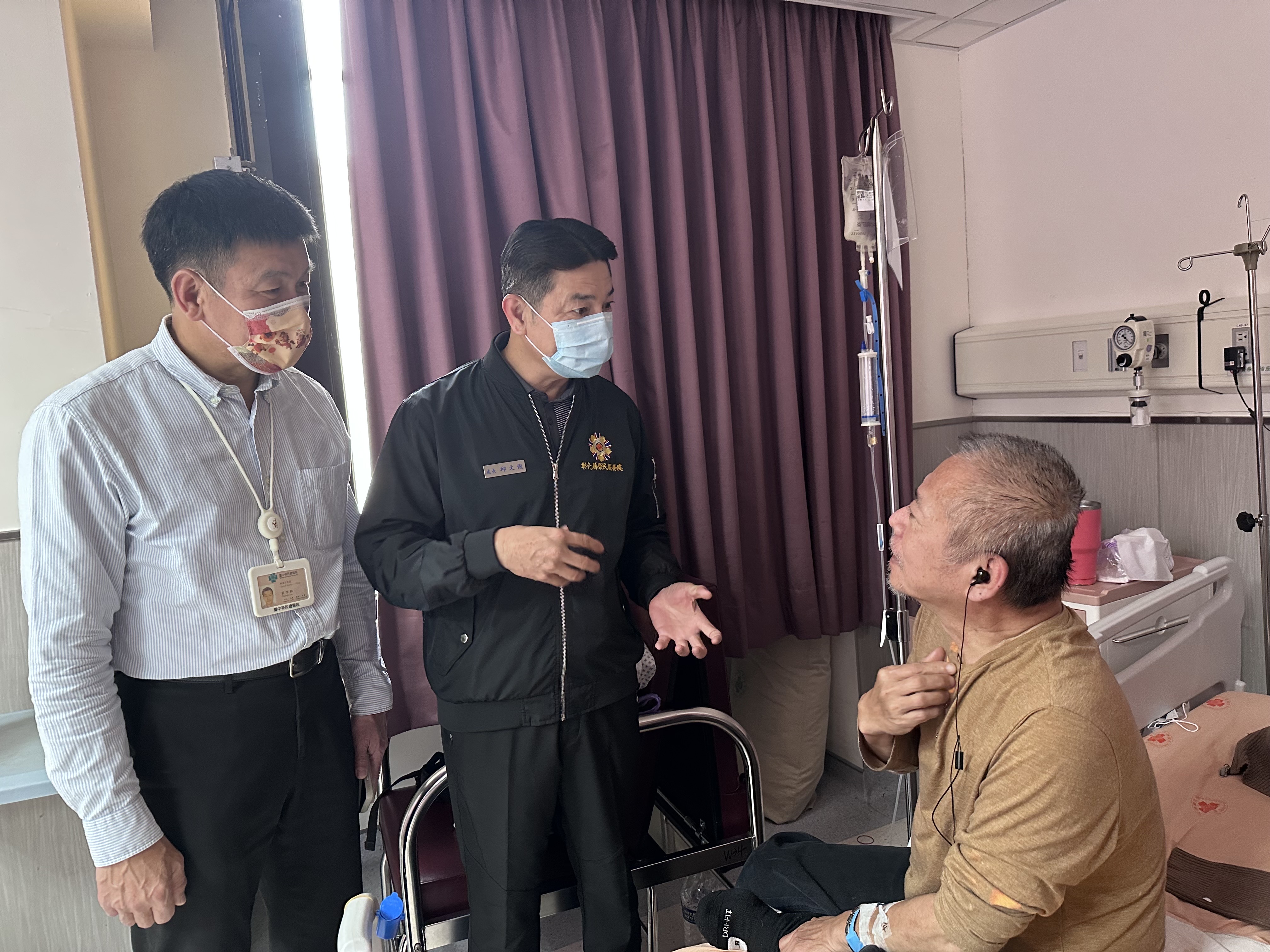 春節將屆,為表達對榮民的關懷與祝福,彰化縣榮民服務處處長邱文俊於日前前往台中榮民總醫院,探訪慰問住院榮民,並致贈人蔘精禮盒,提前祝賀榮民新春安康。 邱處長親自走訪病房,逐一關懷住院榮民的身體狀況與醫療需求,親切叮囑其安心養病、保重身體,並祝福早日康復。受慰問榮民對於榮服處於春節前夕親自前來關懷並致贈養生補品,深表感動與感謝。 隨後,邱處長亦前往社工室拜會社工室莊李和主任,就榮民就醫「綠色通道」相關作業流程進行溝通與了解,期盼透過即時、順暢的就醫服務機制,讓榮民在掛號、檢查及住院等流程上獲得更完善且友善的照護,確保醫療服務不中斷。 邱文俊處長並代表彰化榮服處,向台中榮總醫護及社工人員長期以來用心照顧榮民,表達誠摯感謝與高度肯定,感謝第一線醫療人員在繁忙醫療工作中,仍持續給予榮民最專業、細緻的照護。 邱處長表示,榮民為國家付出貢獻,榮服處將持續秉持主動關懷精神,深化與醫療院所的合作與聯繫,整合各項資源,精進就醫服務與照顧品質,讓榮民及眷屬都能感受到政府的溫暖與支持,安心迎接新的一年。