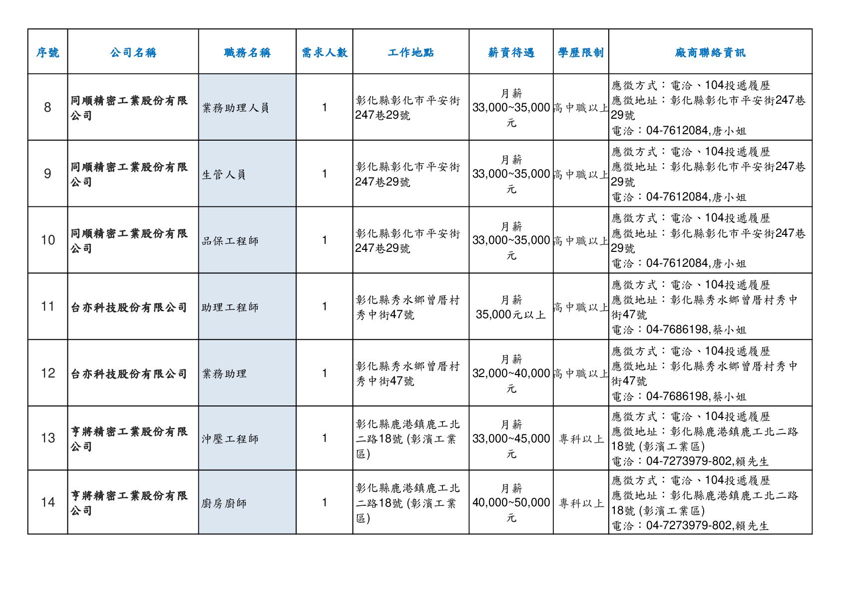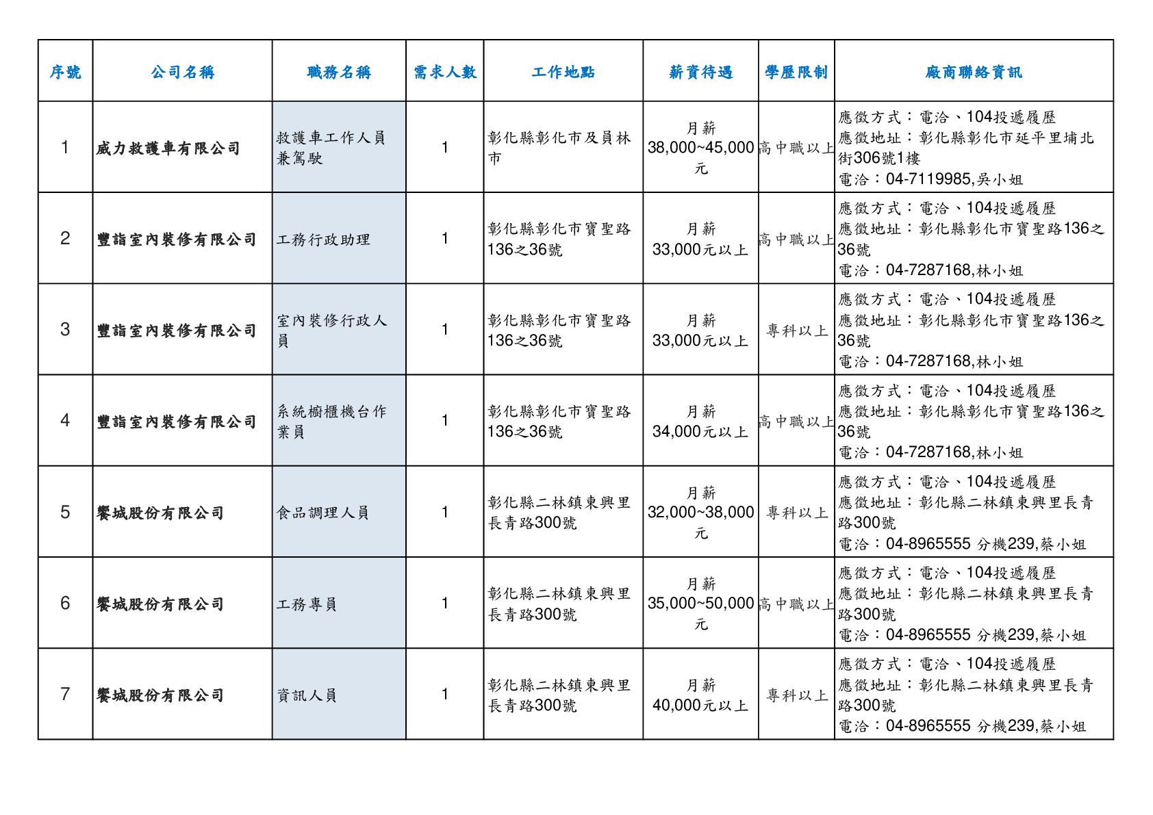 【彰化縣榮服處】廠商職缺表(115.02.26)-002
