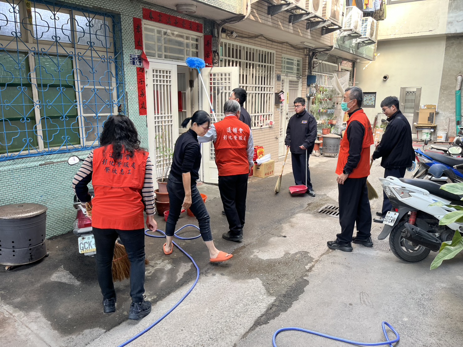 活動當日,彰化縣榮服處輔導員帶領替代役男及榮欣志工一同前往榮民長輩住處,協助整理居家環境,細心打掃屋內外空間,並致贈內政部提供的慰問禮盒與秀水招福宮捐贈的愛心物資,讓長輩們感受節日的溫馨與社會各界的關懷。