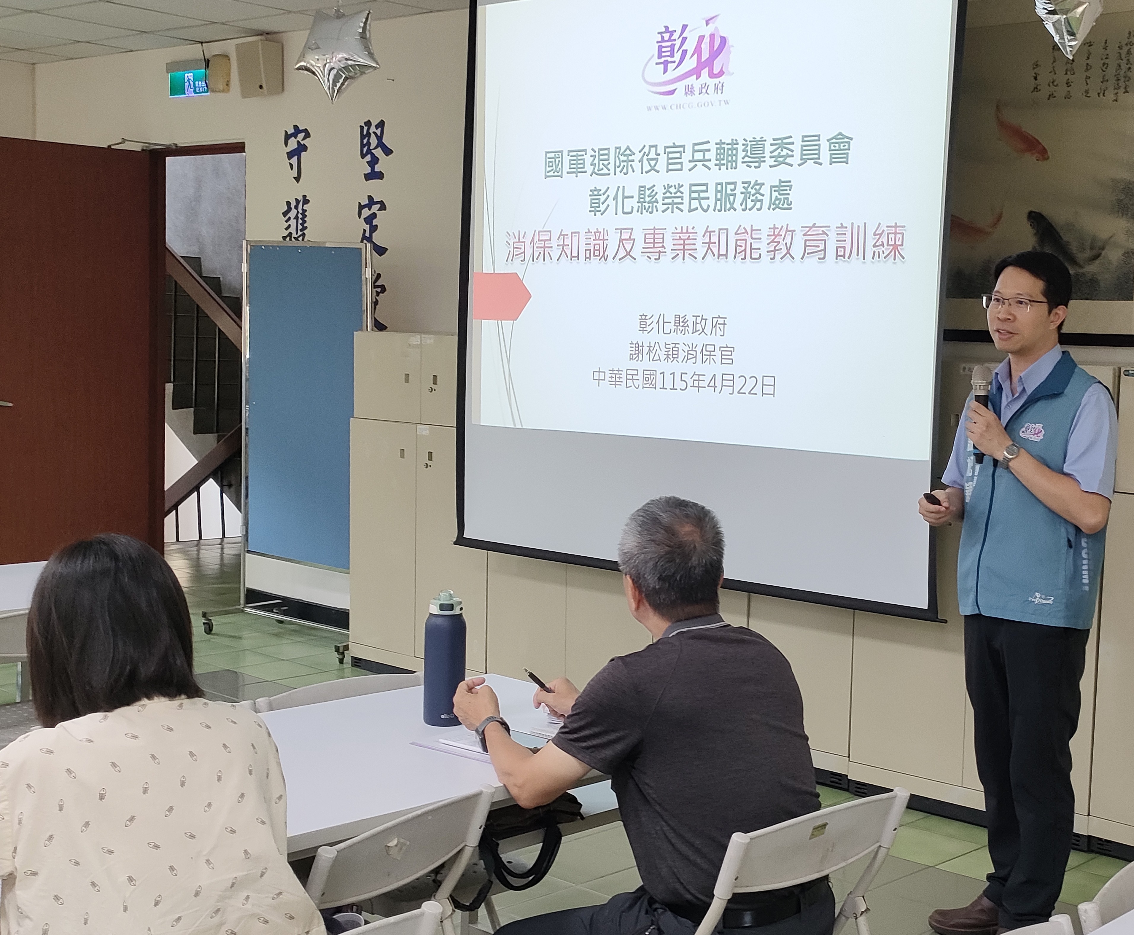 彰化縣榮民服務處為落實退除役官兵及眷屬權益保障,提升同仁處理消費爭議時的專業應變能力,於今日上午特別邀請彰化縣政府消費者保護官謝松穎蒞處,透過實務案例分享與法規解析,強化同仁的消保意識,確保在服務榮民(眷)時,能提供更精準、即時的法律諮詢與協助。 謝松穎消保官針對現今的消費詐騙、一頁式廣告購物糾紛、及長者易遭遇的定型化契約問題進行深入剖析。謝消保官運用豐富的實務經驗,將艱澀的《消費者保護法》條文轉化為淺顯易懂的案例,指導同仁如何辨識不實廣告,以及在消費爭議發生後,應如何引導當事人循正確管道申訴,並現場示範消費爭議調解的溝通技巧。 榮服處邱文俊處長表示,隨科技發展,消費環境日益複雜,榮民長輩往往因資訊落差而成為消費糾紛的弱勢族群。透過此次教育訓練,同仁不僅能充實法學素養,未來在進行居家訪視或臨櫃服務時,更能主動向榮民(眷)宣導消保預防觀念,將法治教育深入基層。 邱文俊處長強調,提供專業、溫暖且全方位的服務是榮服處的核心使命。本次邀請縣府消保專家授課,是跨機關資源整合的體現,目的在於打造一個「懂法、用法、護法」的服務團隊。精進團隊專業職能,成為彰化地區榮民(眷)最堅實的後盾,營造更安全、和諧的消費環境。 相關照片