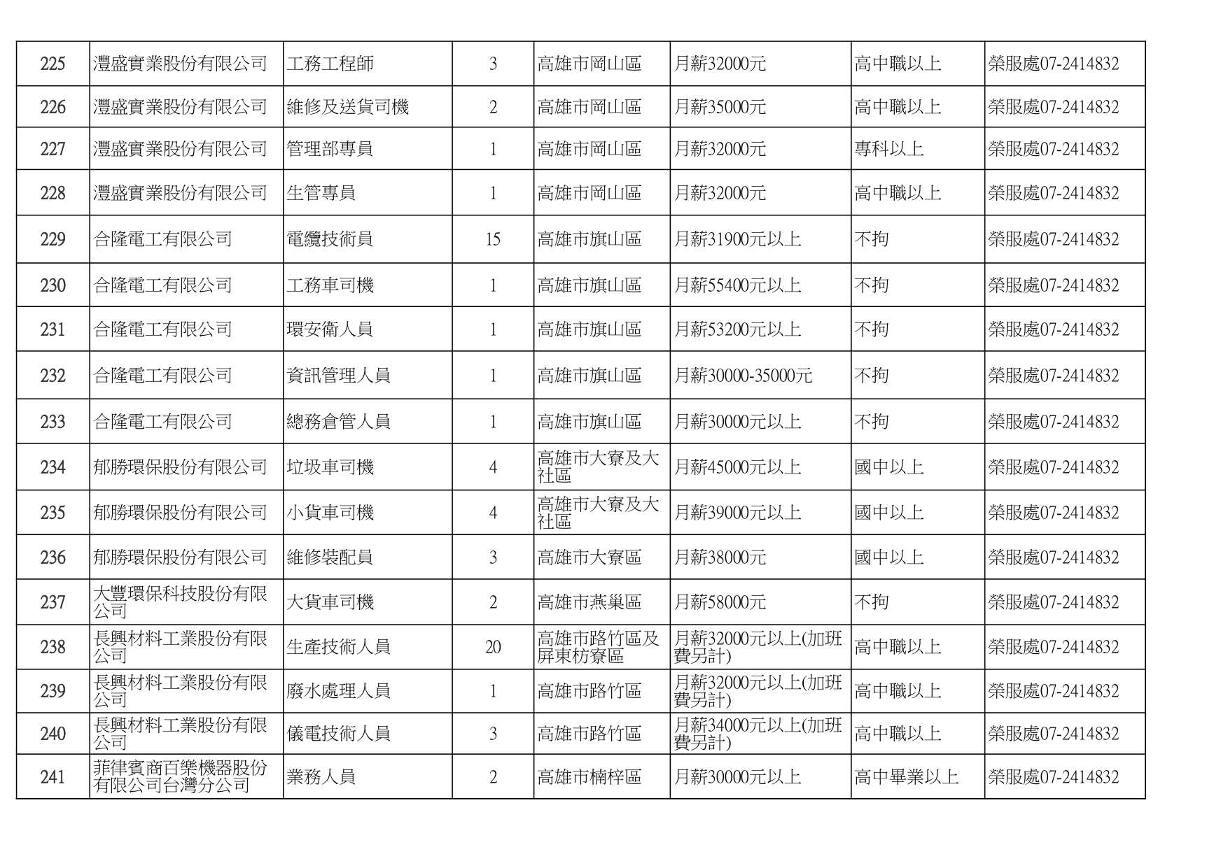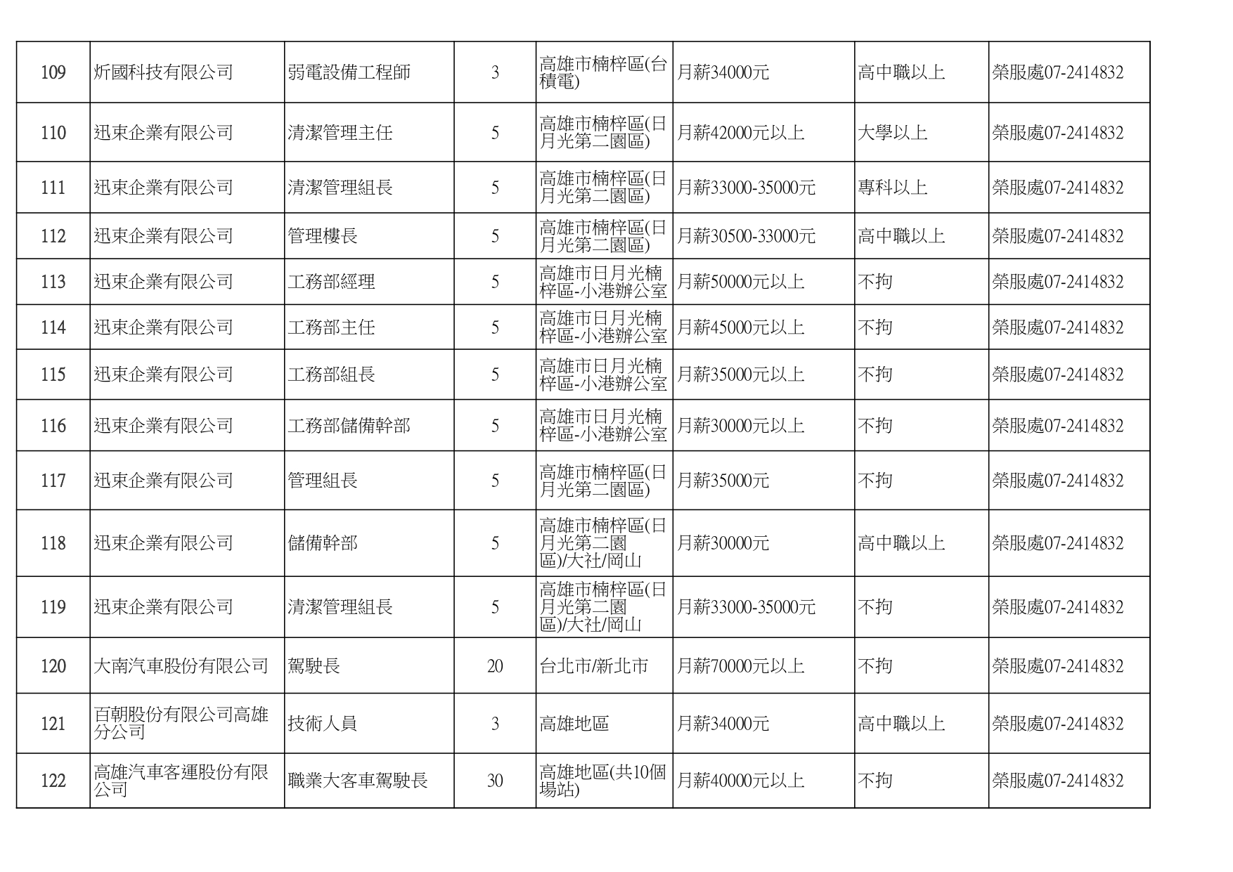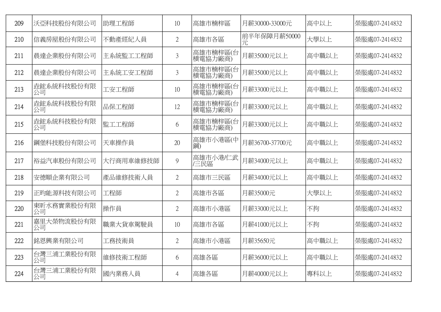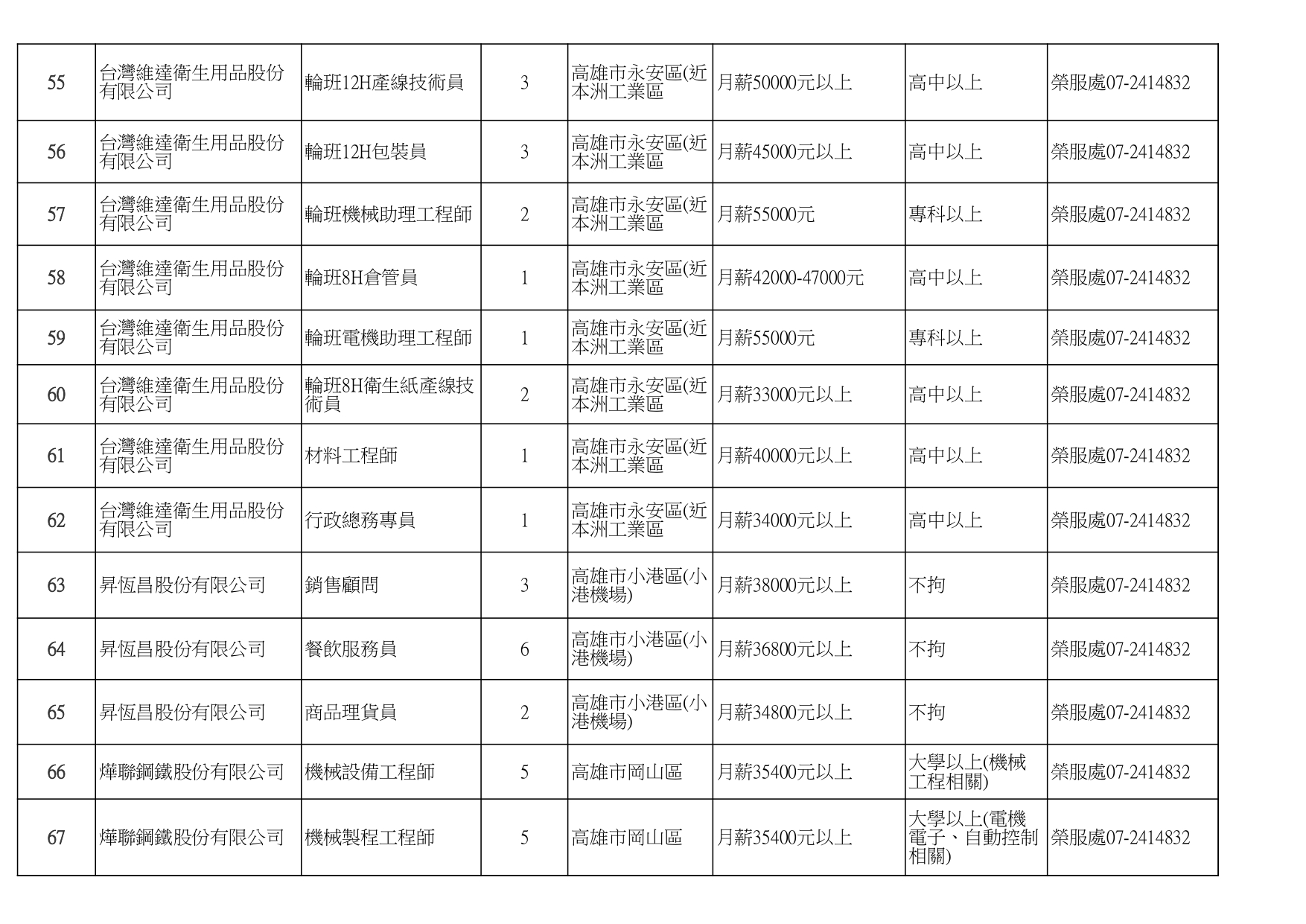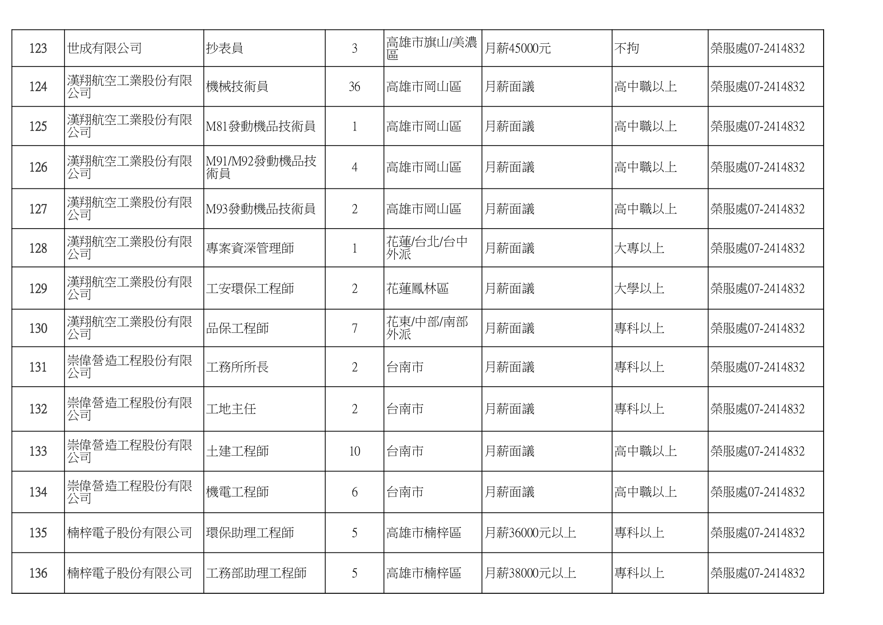 發布日期:115-01-16 資料來源:高雄市榮民服務處 高雄榮服處-廠商職缺列表115.1.16_page-0001有就業需求之退除役官兵,請把握機會! 如有就(轉)業需求,歡迎洽詢本處就業站(07-2414832) 相關照片 高雄榮服處-廠商職缺列表115.1.16_page-0002 高雄榮服處-廠商職缺列表115.1.16_page-0003 高雄榮服處-廠商職缺列表115.1.16_page-0004 高雄榮服處-廠商職缺列表115.1.16_page-0005 高雄榮服處-廠商職缺列表115.1.16_page-0006 高雄榮服處-廠商職缺列表115.1.16_page-0007 高雄榮服處-廠商職缺列表115.1.16_page-0008 高雄榮服處-廠商職缺列表115.1.16_page-0009 高雄榮服處-廠商職缺列表115.1.16_page-0010 高雄榮服處-廠商職缺列表115.1.16_page-0011 高雄榮服處-廠商職缺列表115.1.16_page-0012 高雄榮服處-廠商職缺列表115.1.16_page-0013 高雄榮服處-廠商職缺列表115.1.16_page-0014 高雄榮服處-廠商職缺列表115.1.16_page-0015 高雄榮服處-廠商職缺列表115.1.16_page-0016 高雄榮服處-廠商職缺列表115.1.16_page-0017 高雄榮服處-廠商職缺列表115.1.16_page-0018 高雄榮服處-廠商職缺列表115.1.16_page-0019 高雄榮服處-廠商職缺列表115.1.16_page-0020 附件下載 檔案名稱 更新日期 下載次數 高雄榮服處-廠商職缺列表115.1.16.pdf 115-01-16 7