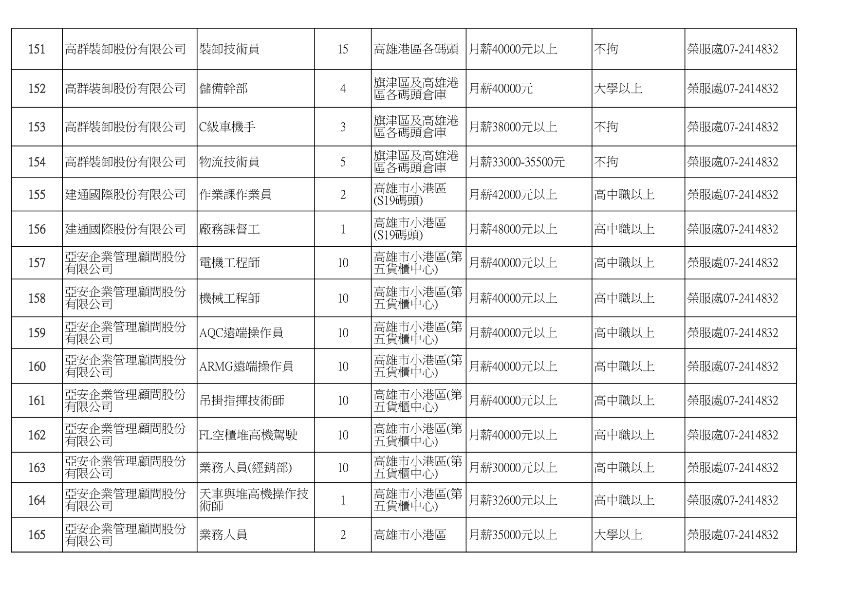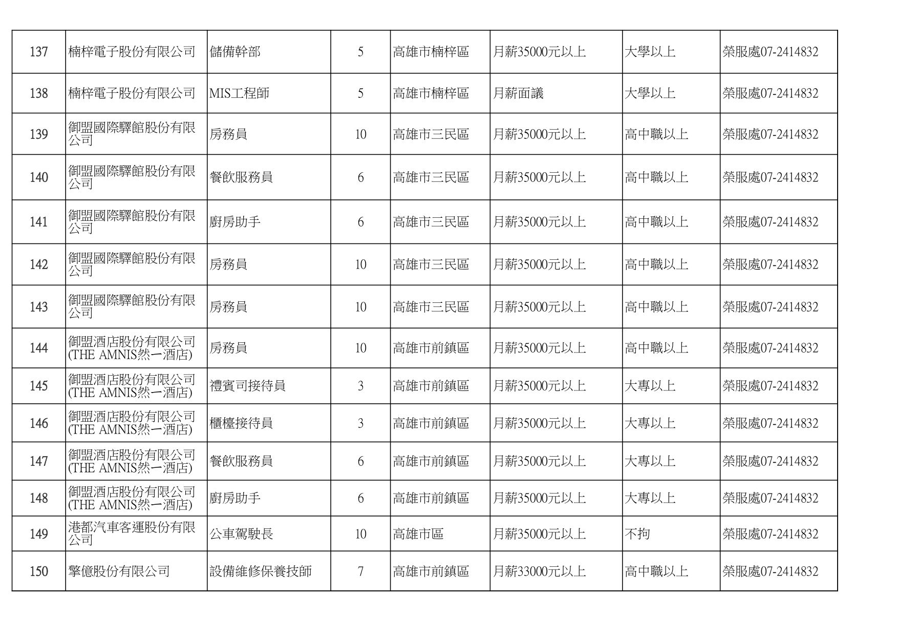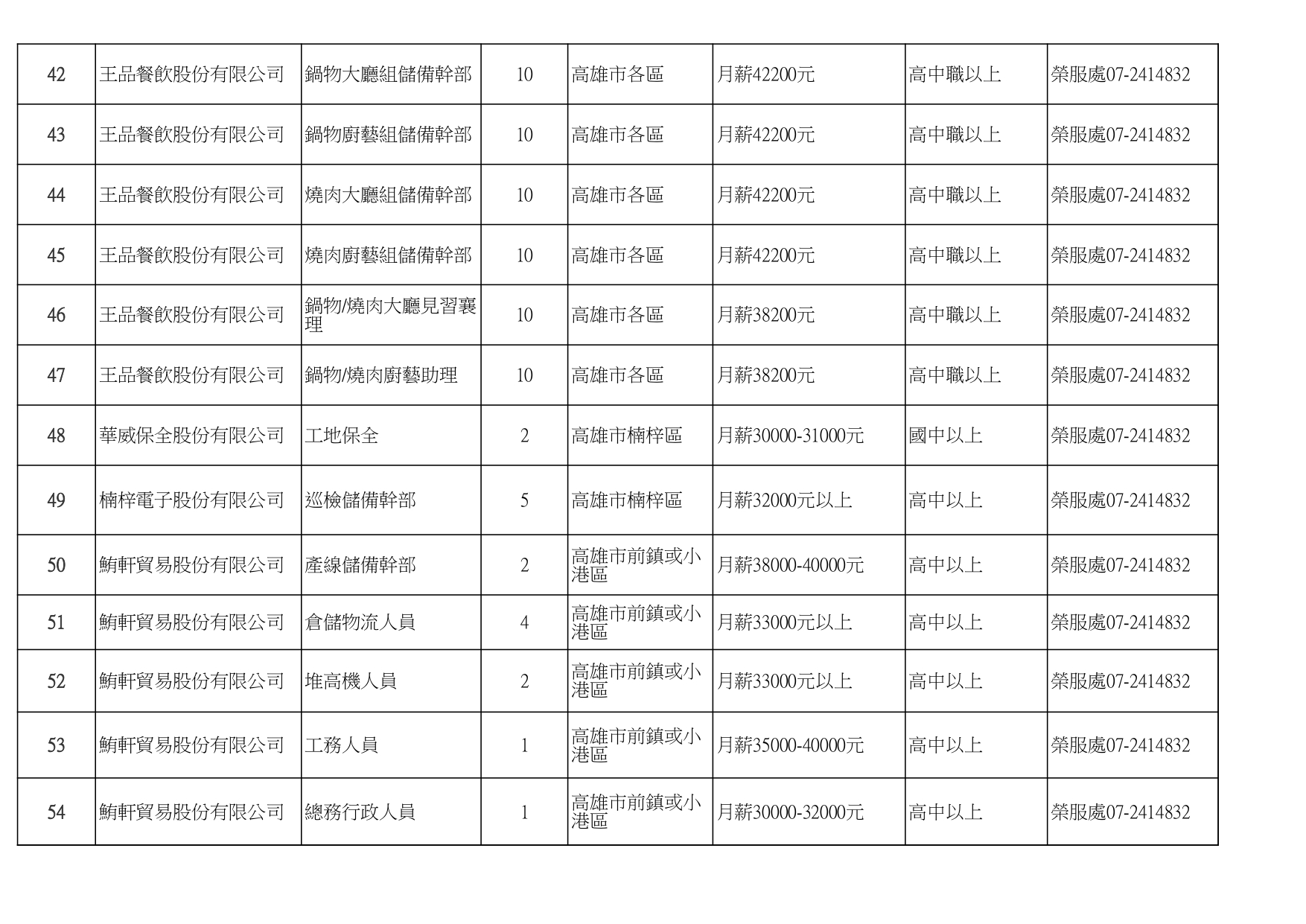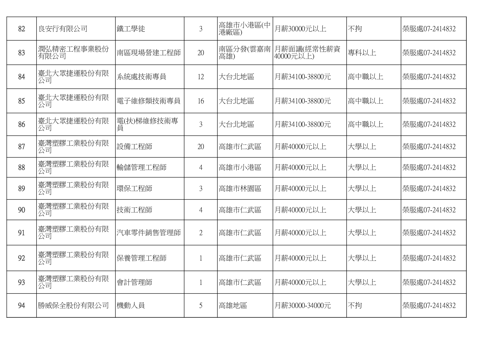 發布日期:115-01-16 資料來源:高雄市榮民服務處 高雄榮服處-廠商職缺列表115.1.16_page-0001有就業需求之退除役官兵,請把握機會! 如有就(轉)業需求,歡迎洽詢本處就業站(07-2414832) 相關照片 高雄榮服處-廠商職缺列表115.1.16_page-0002 高雄榮服處-廠商職缺列表115.1.16_page-0003 高雄榮服處-廠商職缺列表115.1.16_page-0004 高雄榮服處-廠商職缺列表115.1.16_page-0005 高雄榮服處-廠商職缺列表115.1.16_page-0006 高雄榮服處-廠商職缺列表115.1.16_page-0007 高雄榮服處-廠商職缺列表115.1.16_page-0008 高雄榮服處-廠商職缺列表115.1.16_page-0009 高雄榮服處-廠商職缺列表115.1.16_page-0010 高雄榮服處-廠商職缺列表115.1.16_page-0011 高雄榮服處-廠商職缺列表115.1.16_page-0012 高雄榮服處-廠商職缺列表115.1.16_page-0013 高雄榮服處-廠商職缺列表115.1.16_page-0014 高雄榮服處-廠商職缺列表115.1.16_page-0015 高雄榮服處-廠商職缺列表115.1.16_page-0016 高雄榮服處-廠商職缺列表115.1.16_page-0017 高雄榮服處-廠商職缺列表115.1.16_page-0018 高雄榮服處-廠商職缺列表115.1.16_page-0019 高雄榮服處-廠商職缺列表115.1.16_page-0020 附件下載 檔案名稱 更新日期 下載次數 高雄榮服處-廠商職缺列表115.1.16.pdf 115-01-16 7