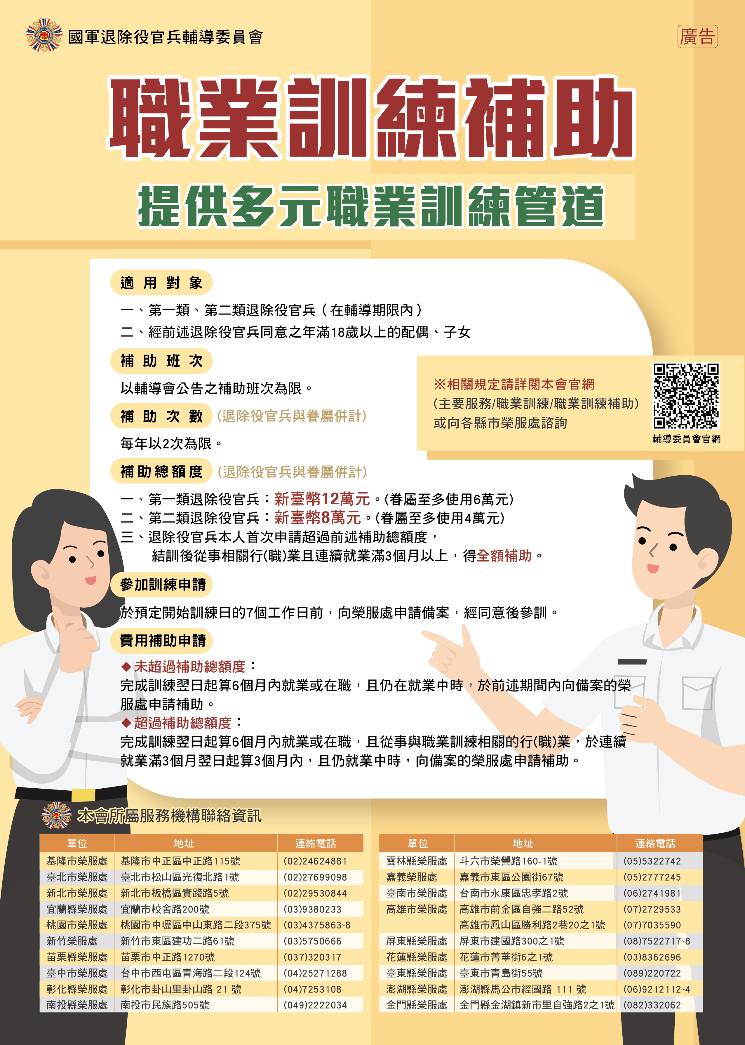※另退輔會訂定「國軍退除役官兵參加職業訓練補助」相關資料查詢。 https://www.vac.gov.tw/lp-2031-1.html