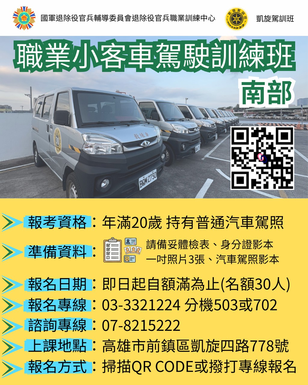 ✅訓練地點:高雄市前鎮區凱旋四路778號 ✅訓練時間:請上職訓中心報名網站查看開班訓練梯次 ✅報名時間:即日起至額滿為止(名額30人)