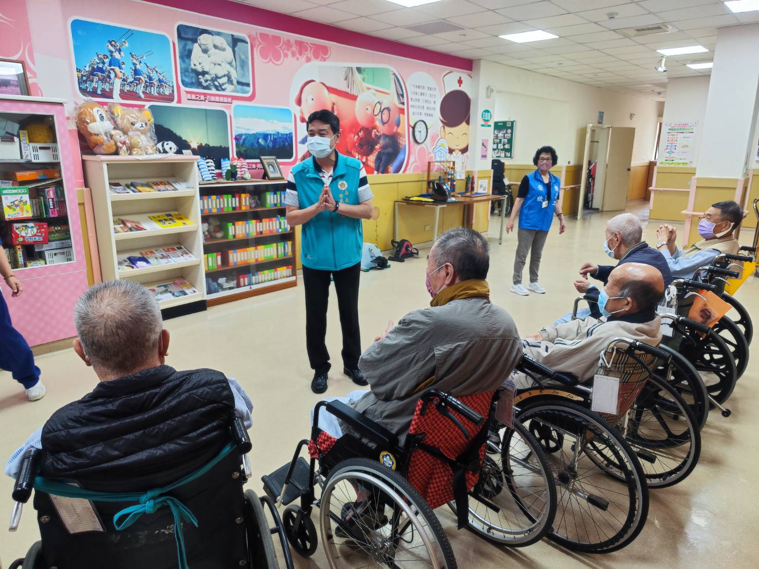 嘉義榮服處處長邱文俊今(13)日率榮欣志工及替代役男前往臺中榮總嘉義分院,與分院社工室主任陳麗圓共同探視關懷住院榮民,並致送營養補充品,向這些榮民長輩們表達關懷之意,期盼長輩們均能平安康健。