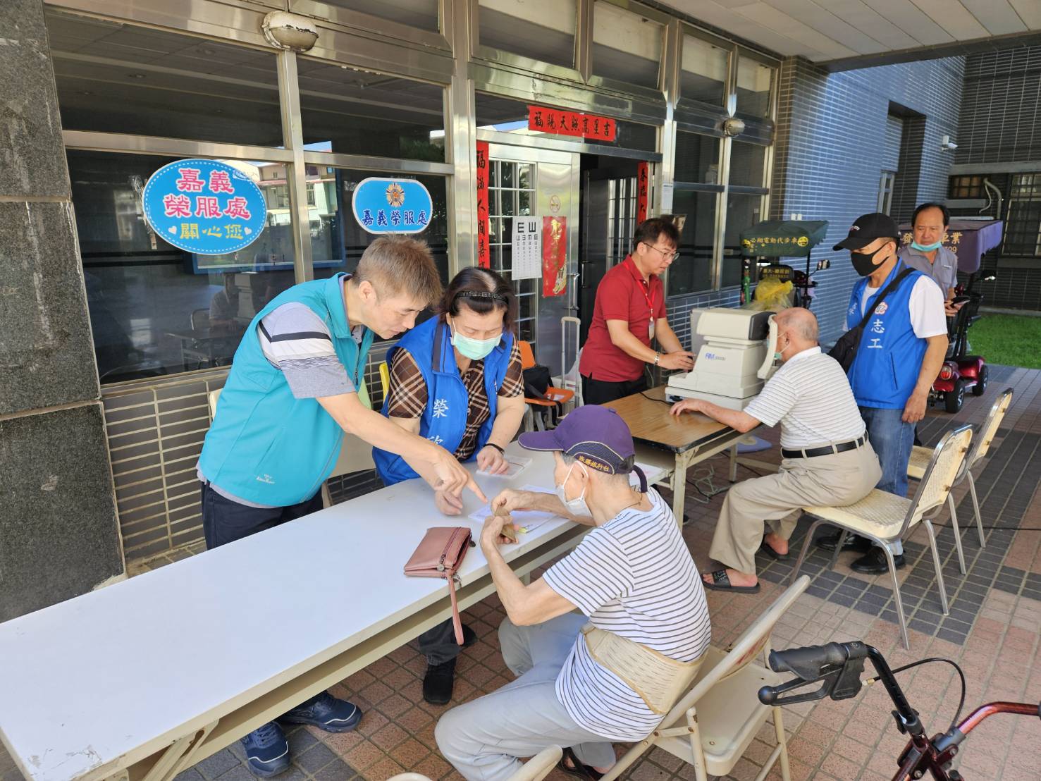 嘉義榮服處為轄內榮民提供視力保健及配鏡驗光服務,於7月16日結合退輔會合約眼鏡廠商-正雄眼鏡公司派遣專業驗光師,攜帶驗光設備在嘉義市東區精忠社區舉辦眼鏡驗光巡迴服務,關懷年長者的視力需求,榮欣志工協助巡迴服務,為了讓更多榮民參與活動,由在地志工郭先生到各棟樓邀請榮民來配鏡,不僅協助視力量測,還提醒眼鏡清潔注意事項,更加貼近榮民需求,實踐「榮民在哪裡、服務到哪裡」的精神。