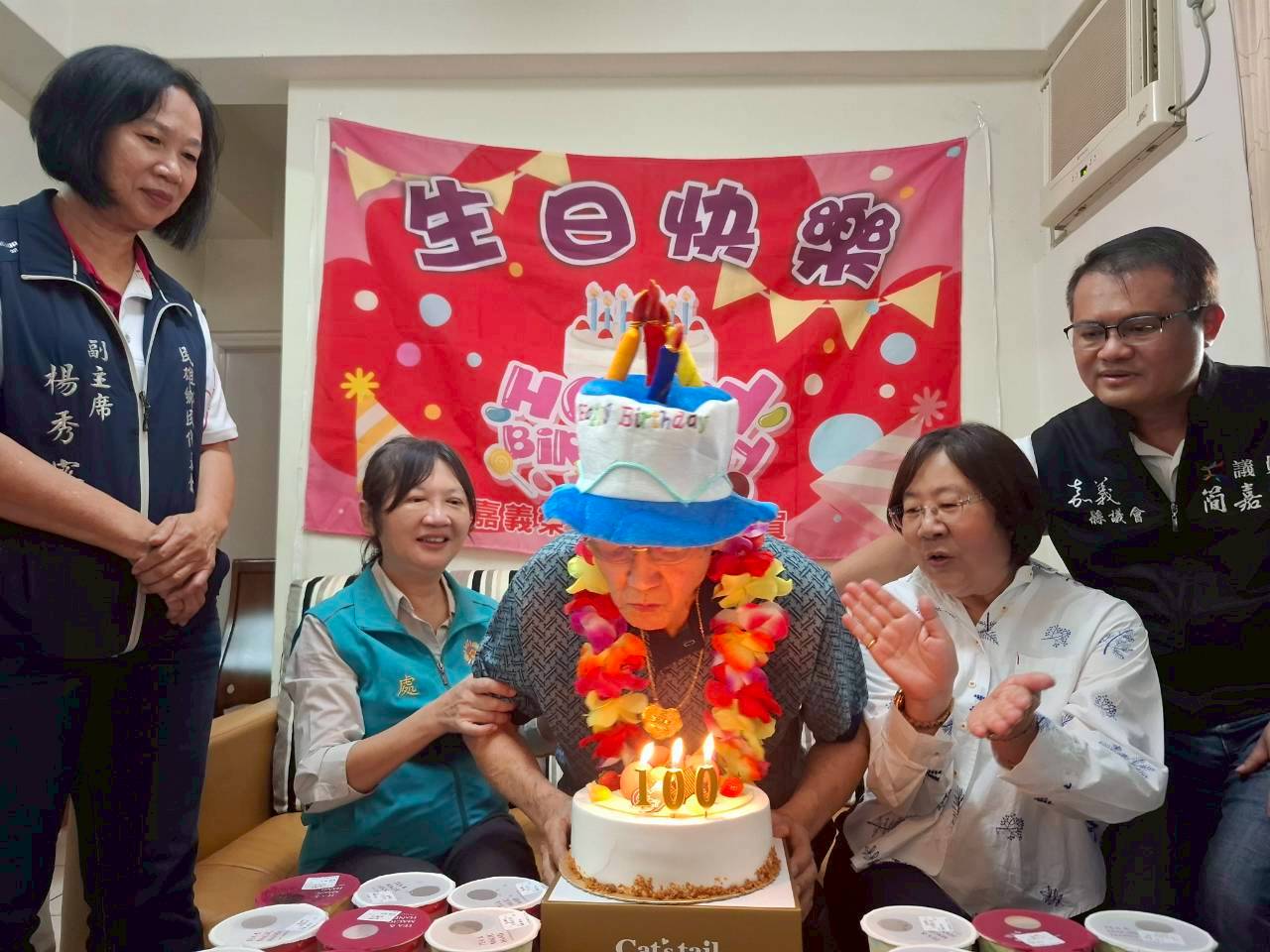 嘉義榮服處與公所齊賀壽 百歲榮民唐伯伯哼唱軍歌