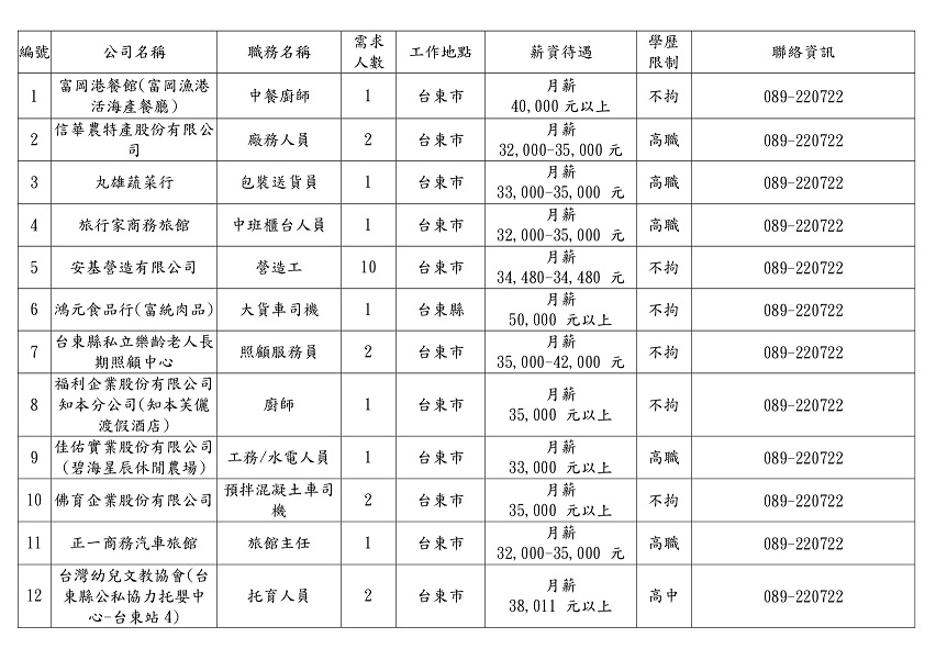 發布日期:115-01-27 資料來源:臺東縣榮民服務處 【臺東榮服處】廠商職缺表_115.01.27 附件下載 檔案名稱 更新日期 下載次數 【臺東榮服處】廠商職缺表_115.01.27.pdf 115-01-27 0