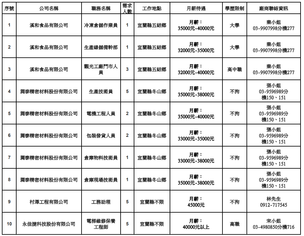 發布日期:115-04-23 資料來源:宜蘭縣榮民服務處 【宜蘭縣榮服處】廠商職缺表(115.04.27) 附件下載 檔案名稱 更新日期 下載次數 【宜蘭縣榮服處】廠商職缺表(115.04.27).pdf 115-04-23 6