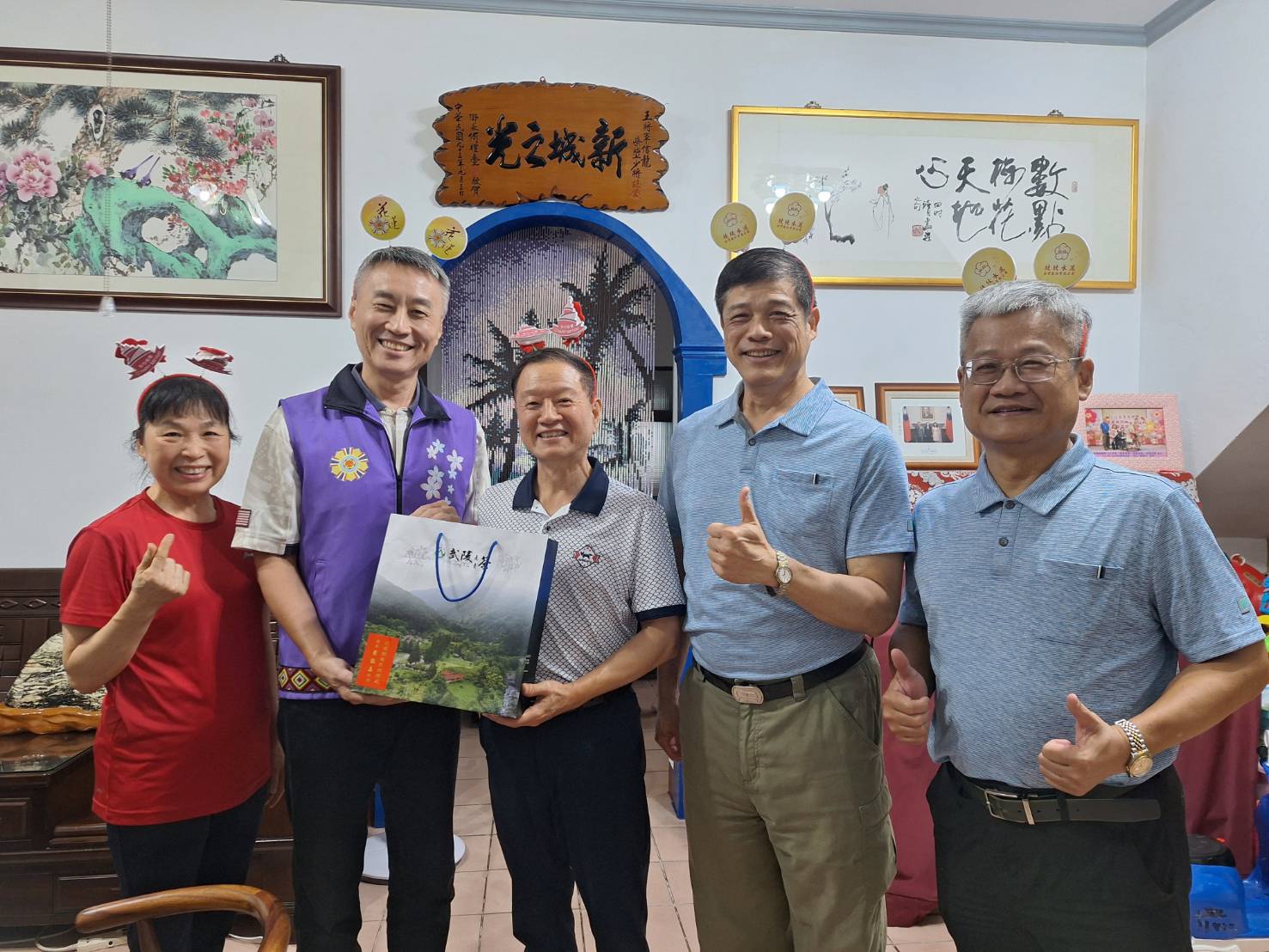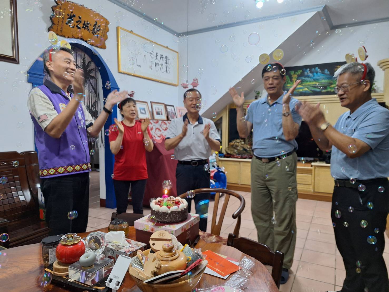 蕭振嘉處長代表轉贈總統府暨輔導會生日賀卡-向王信龍將軍生日祝福,欣欣水泥企業股份有限公司郭先琛、前總經理吳孟宗一同祝賀