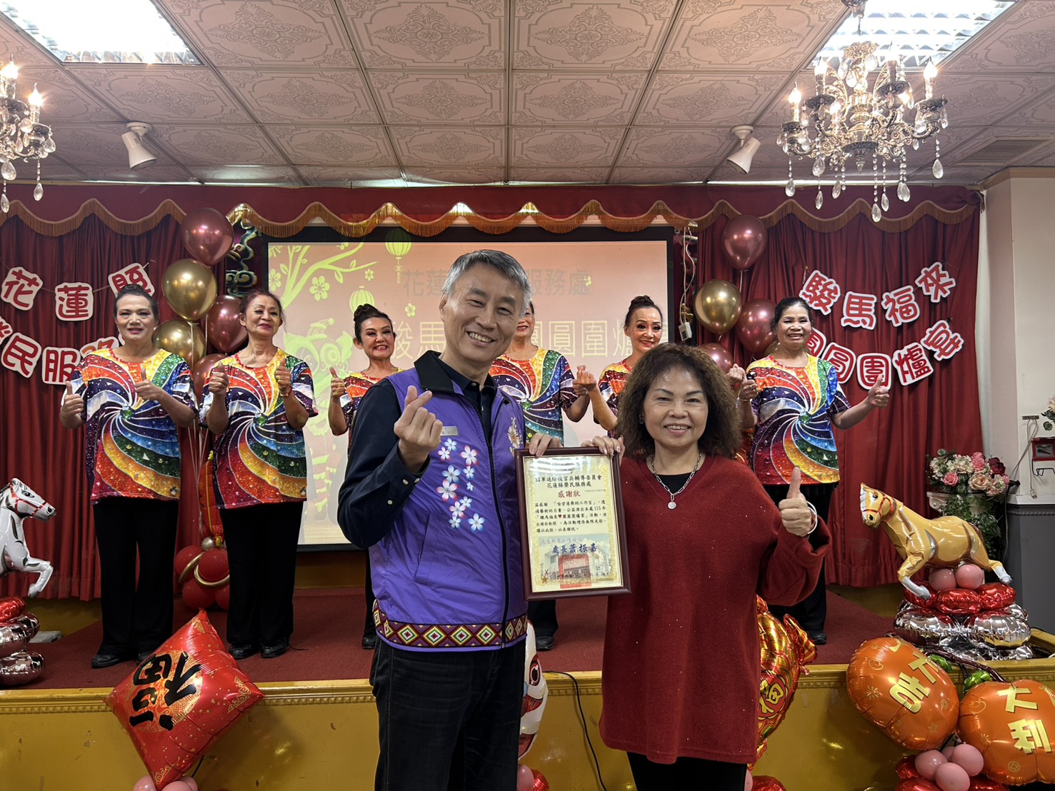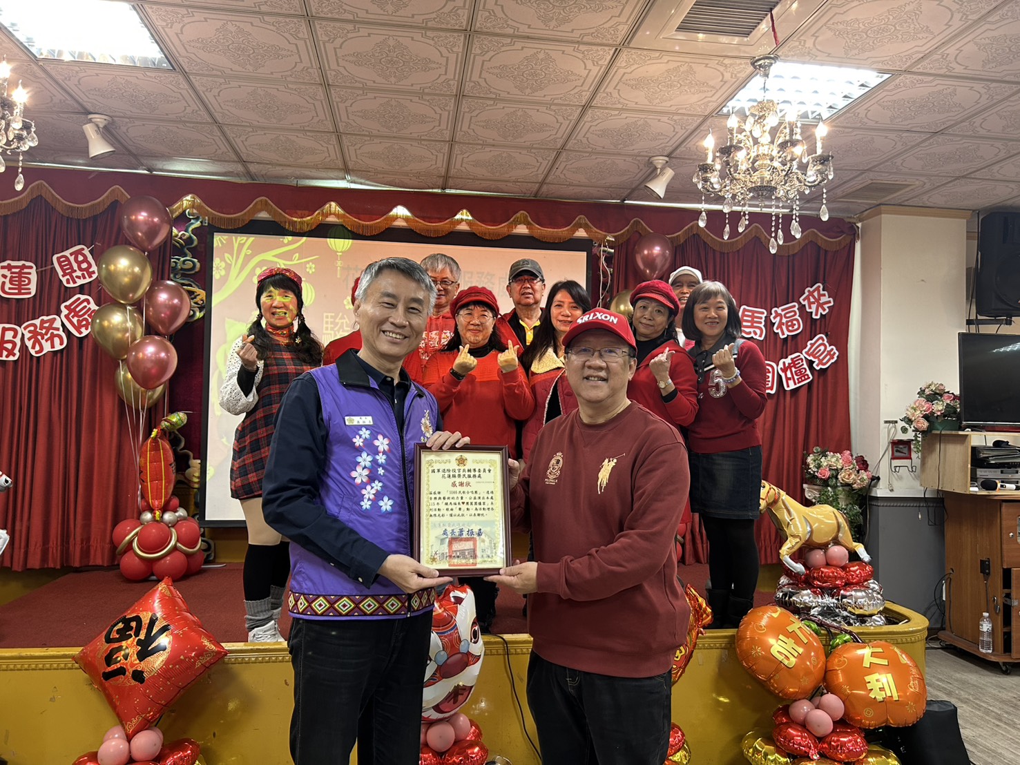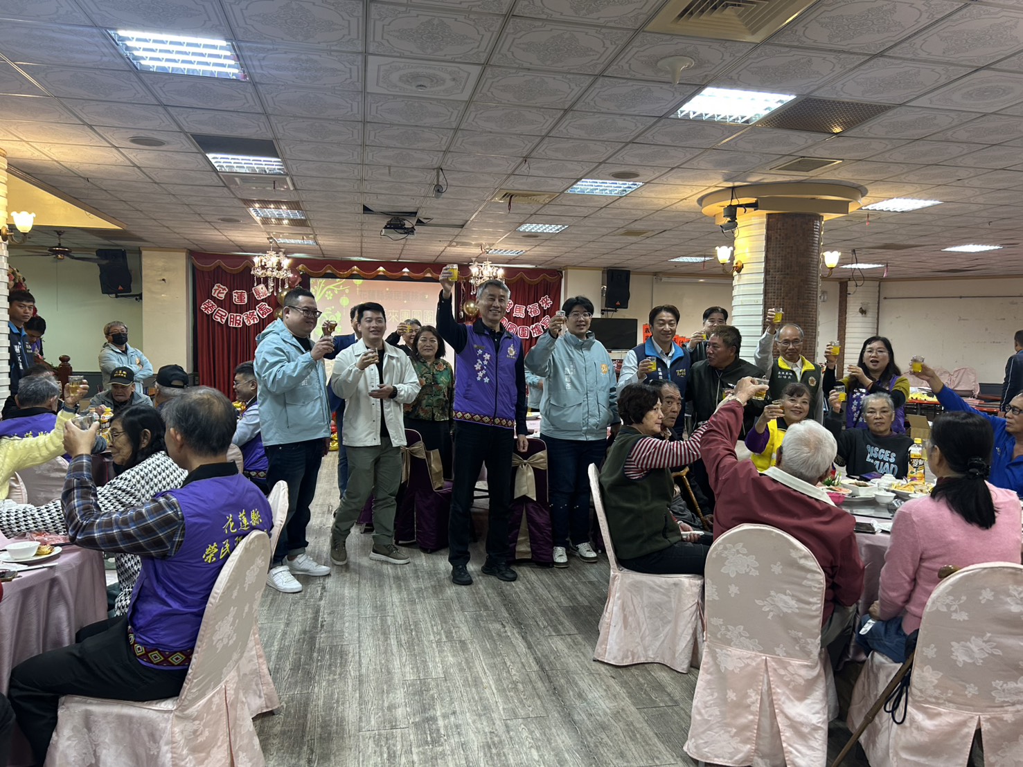 迎接 2026 丙午馬年,為讓退除役官兵前輩感受年節溫暖,花蓮縣榮民服務處攜手花蓮市公所今(30)日於花蓮市芳村海鮮餐廳舉辦115年[駿馬福來~團圓圍爐宴活動],邀請參與八二三、六一九戰役的退除役官兵前輩及年長獨居長者齊聚,在溫馨的氣氛中共度團圓時光,提前迎接農曆年到來,活動開場表演由喻碧蓮舞蹈工作室及5566民歌合唱團熱場,豐盛的年菜、熱騰騰的佳餚,活動會場充份感受到吉他樂器呈現出豐富柔美和聲與美妙舞姿,讓参與長者不止吃得飽,心裡暖呼呼,共賞音樂舞蹈之美團圓氛圍。 花蓮縣議員魏嘉賢、花蓮市長魏嘉彥、課長蕭子蔚、財團法人榮民榮眷基金會董事吳政哲、花蓮麥當勞董事長楊政道、臺東農場副場長鄔弘盛、花蓮榮譽國民之家主任游文勇、北部地區人才招募中心花蓮招募站站長陳建榕、花蓮縣長青書畫會理事長湯大凰及理事古華忠、花蓮縣八二三戰役戰友協會理事長林芳榮及欣欣水泥企業股份有限公司經理李永光親自出席,肯定退除役官兵前輩一生為國家付出與貢獻,並祝福長輩們身體健康、平安喜樂,也感謝一年來奔波推展業務與服務照顧的社區志願服務組長、志工們,期望透過大家一同團圓,傳遞溫暖心意。 花蓮縣榮民服務處處長蕭振嘉致詞表示,感謝各會屬投資事業單位~財團法人榮民榮眷基金會、大南汽車、欣欣客運、欣泰、欣湖、欣隆天然氣、欣欣水泥企業股份有限公司等熱心贊助,使活動得以圓滿舉行,並特別感謝臺東農場慷慨提供優質農產白米作為伴手禮、南投玄聖堂捐贈民生物資,讓退除役官兵眷長輩感受到實質關懷與溫暖心意。花蓮縣榮民服務處未來將持續結合社會資源,辦理多元關懷活動,讓退除役官兵眷在花蓮都能感受到被尊重、被照顧的幸福生活。 相關照片