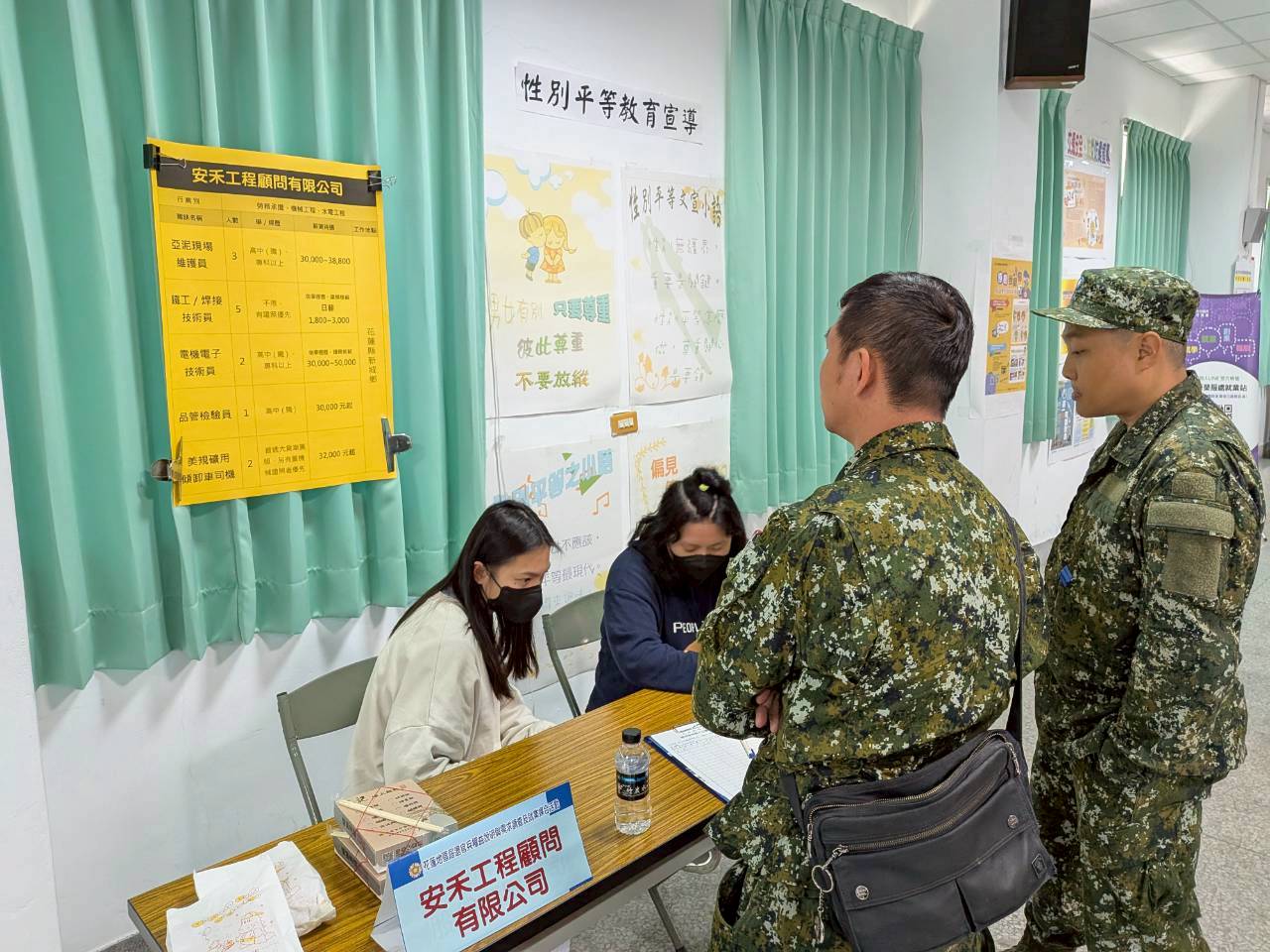 - 本次說明會結合理想大地股份有限公司、中華紙漿股份有限公司、安禾工程顧問有限公司及新光人壽等花蓮地區知名企業,提供多個優質職缺,於現場辦理就業媒合活動,屆退官兵亦踴躍與廠商洽詢,花蓮縣榮民服務處將持續推動與開發企業優質職缺,提供退除役官兵更多元的就業機會。
