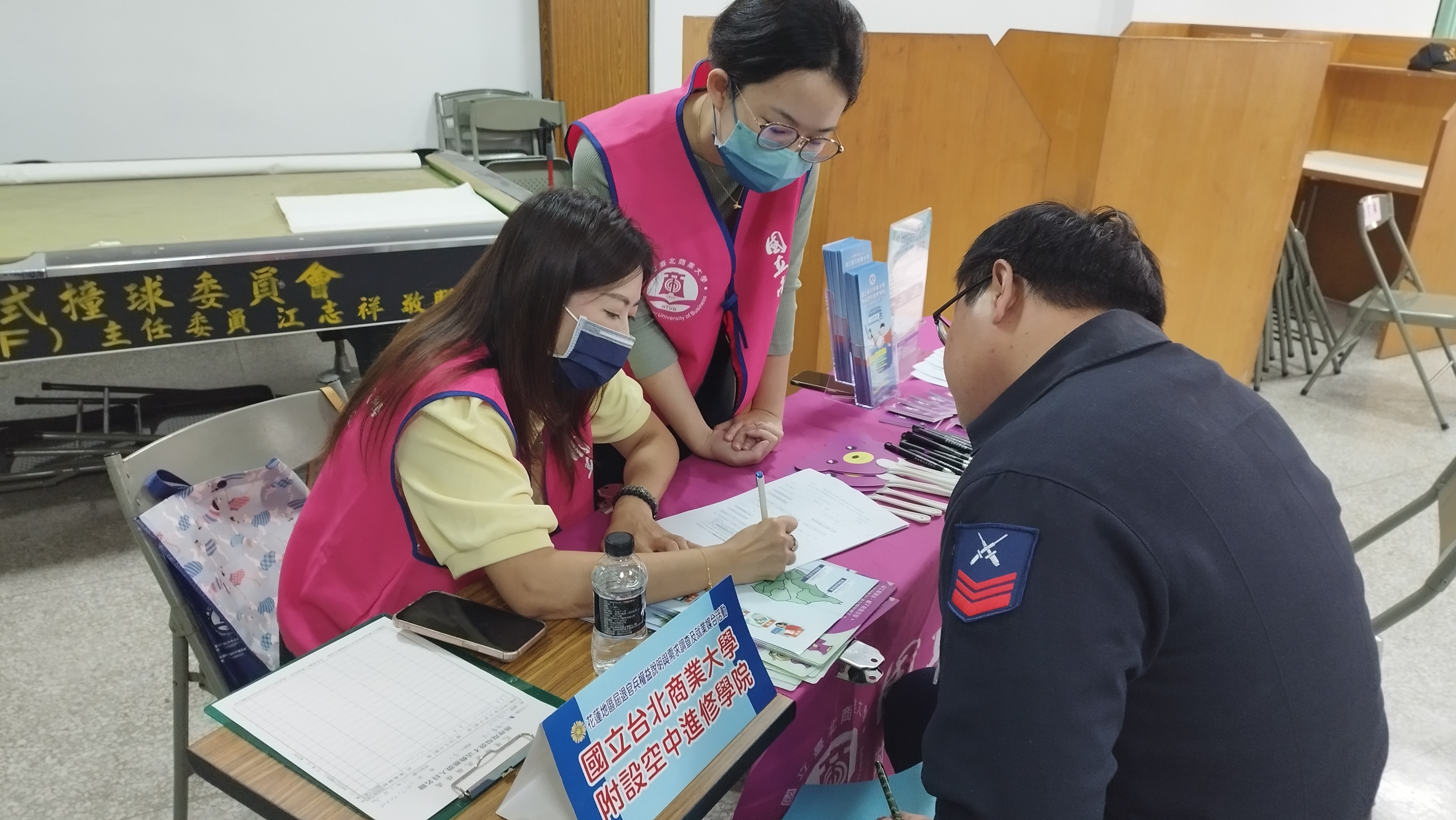 圖五-國立臺北商業大學附設空中進修學院花蓮輔導處(左二)提供進修諮詢