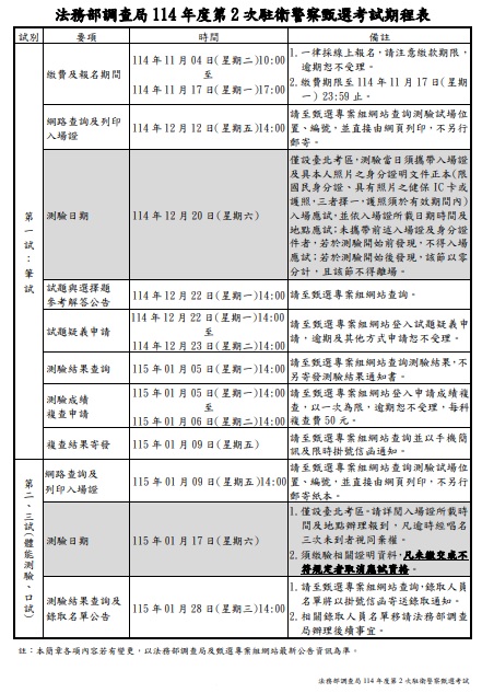 法務部調查局「114年度第2次駐衛警察甄選考試」