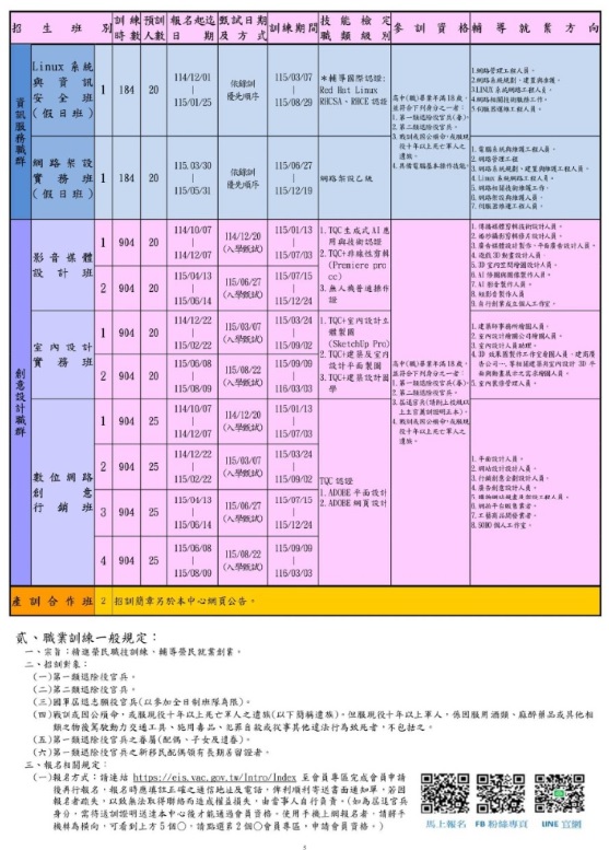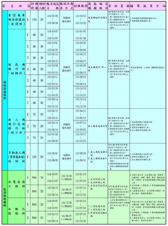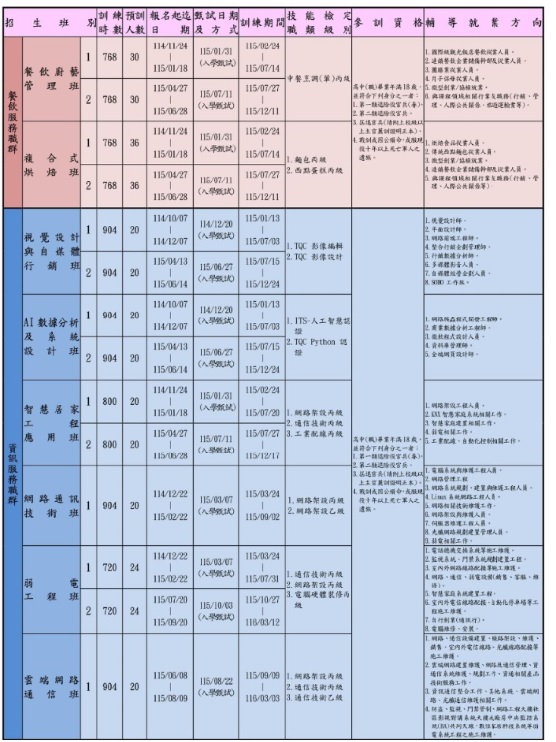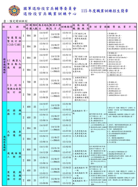 【退輔會職訓中心-115年自辦訓練課程報名資訊】