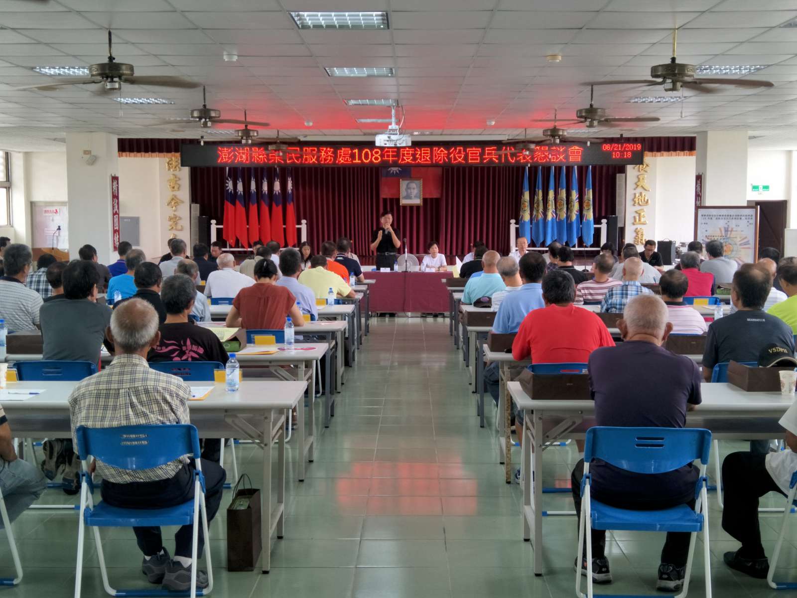 本處為關懷退除役官兵生活情況、傾聽心聲與廣納建言,於8月21日舉辦108年「退除役官兵代表懇談會」,會議由處長陳平主持,與會退除役官兵代表及退伍軍人社團成員近70人,議長劉陳昭玲、副議長陳雙全、澎湖縣政府參議高文石、馬公市長葉竹林、馬公市民代表會主席許國政皆親臨現場,澎湖縣政府衛生局、陸軍澎湖防衛指揮部、澎湖縣後備指揮部、三軍總醫院澎湖分院、衛生福利部澎湖老人之家等單位均派員列席參加。