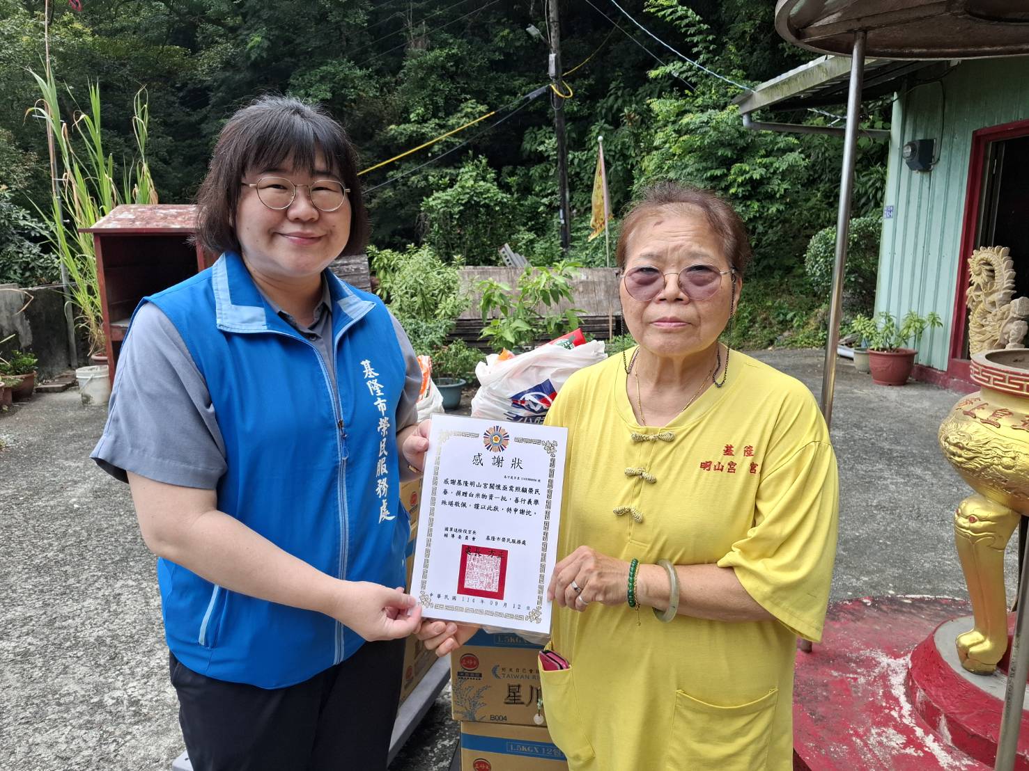 基隆明山宮秋節前捐贈愛心物資關懷基隆地區榮民眷
