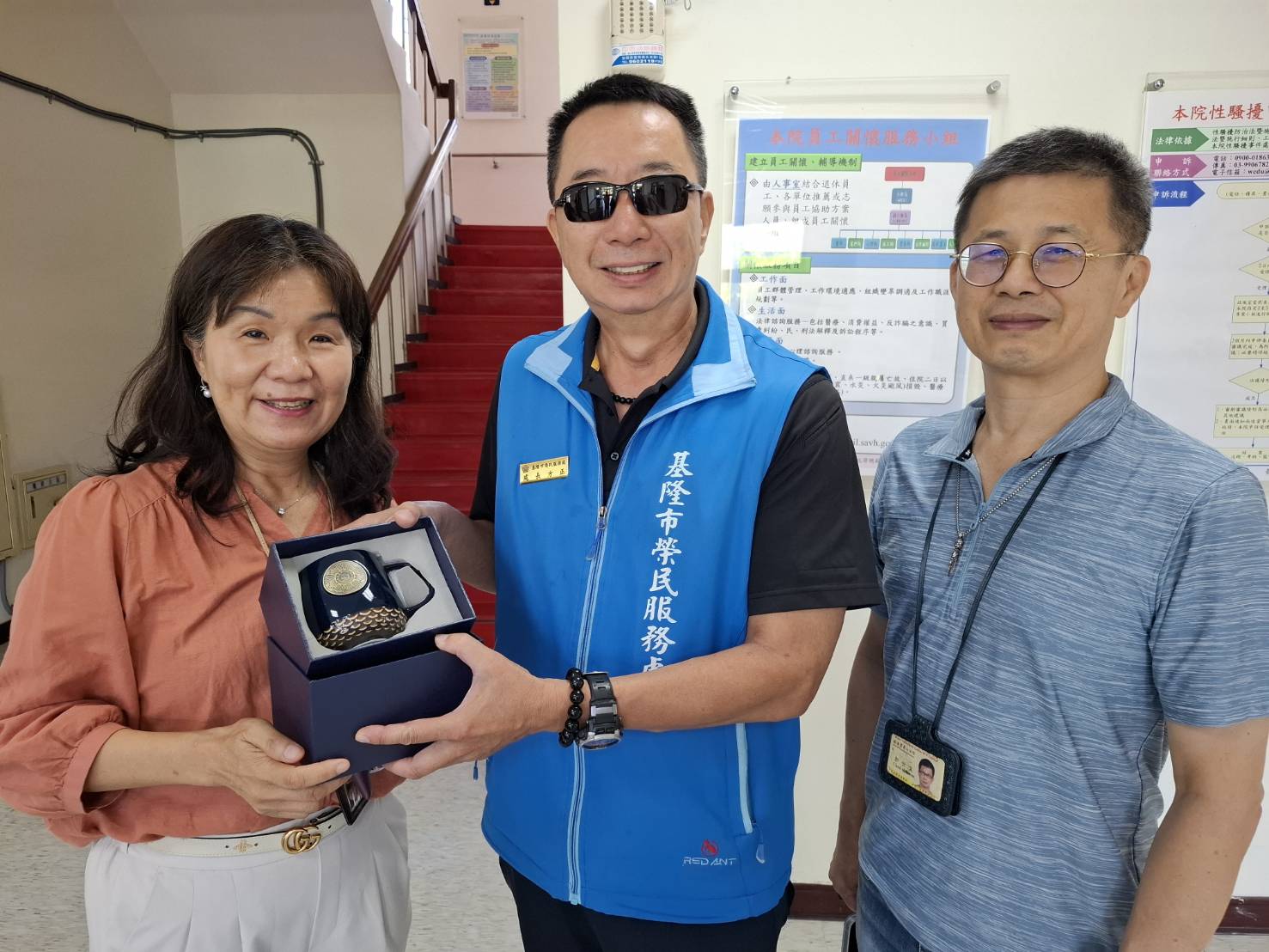 秋節將屆,今(25)日基隆市榮服處方正處長率服務同仁,前往宜蘭地區臺北榮總員山及蘇澳分院,探視關懷轄區內住兩院之榮民,一行人受到員山分院葉靜怡副院長率社工師及護理師的熱情接待,方處長除了準備了營養品探望住院榮民外,同時也提供小點心慰勞醫院社工室、護理站同仁,感謝他們細心照顧住院榮民的辛勞。