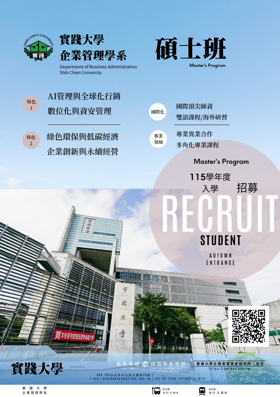 115學年度入學招生實踐大學企業管理學EMBA碩士在職專班