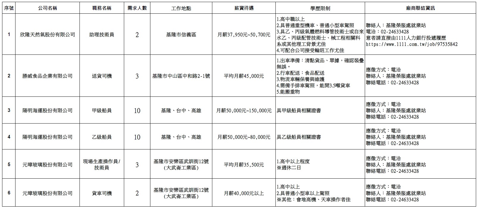【基隆市榮服處】廠商職缺表(114.11.25)-6