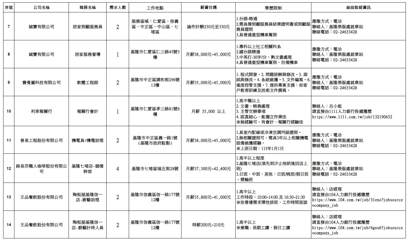 【基隆市榮服處】廠商職缺表(114.11.25)-2