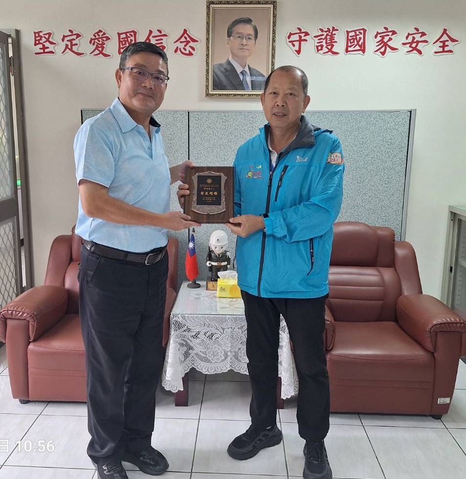 金門榮服處劉信義處長今(3)日在本處辦公室接見榮民何永城先生,恭喜何先生獲選輔導會第47屆榮民楷模殊榮,並頒贈其本處榮民楷模獎牌,感謝何先生長年來於消防、環保及社區發展領域擔任志工,並時常連繫臺灣退伍軍人團體,捐贈金錢、物資來認養榮民遺孤及照顧弱勢榮民眷。 本處辦理榮民節慶祝活動當日,何先生因赴台參加輔導會表揚活動,沒有辦法到會場接受表揚,當何先生回來金門後本處便立即與其連繫,表示要將這份榮耀親自送到府上,為人客氣的他聽後則表示:「擇日不如撞日」,連繫結束後便親自前來本處領獎。 劉信義處長頒獎後也關心他這次到輔導會接受表揚的情形,何先生說這次到臺灣參訪臺中榮民總醫院的「全自動智能檢驗室」、「智慧護理照護」及「遠距醫療中心」,院方透過數位轉型與自動化流程,提升醫療效率與照護品質,展現持續照顧榮民眷健康福祉的用心,也讓參訪的榮民楷模們親身感受醫療科技的進步與貼心服務,另外能與來自四面八方的楷模代表共聚一堂,相互交流切磋學習更是難得的寶貴經驗,發現許多榮民們退伍後投身各界默默付出,行有餘力則以助人,坦言自己在從事公益上仍有相當大的進步空間。 劉信義處長再次恭喜何永城先生當選輔導會榮民楷模,也表示此次他當選可謂是實至名歸,感謝何先生長年對榮服處的協助,更希望未來能持續引介各界資源,一同用大愛來服務照顧榮民眷。