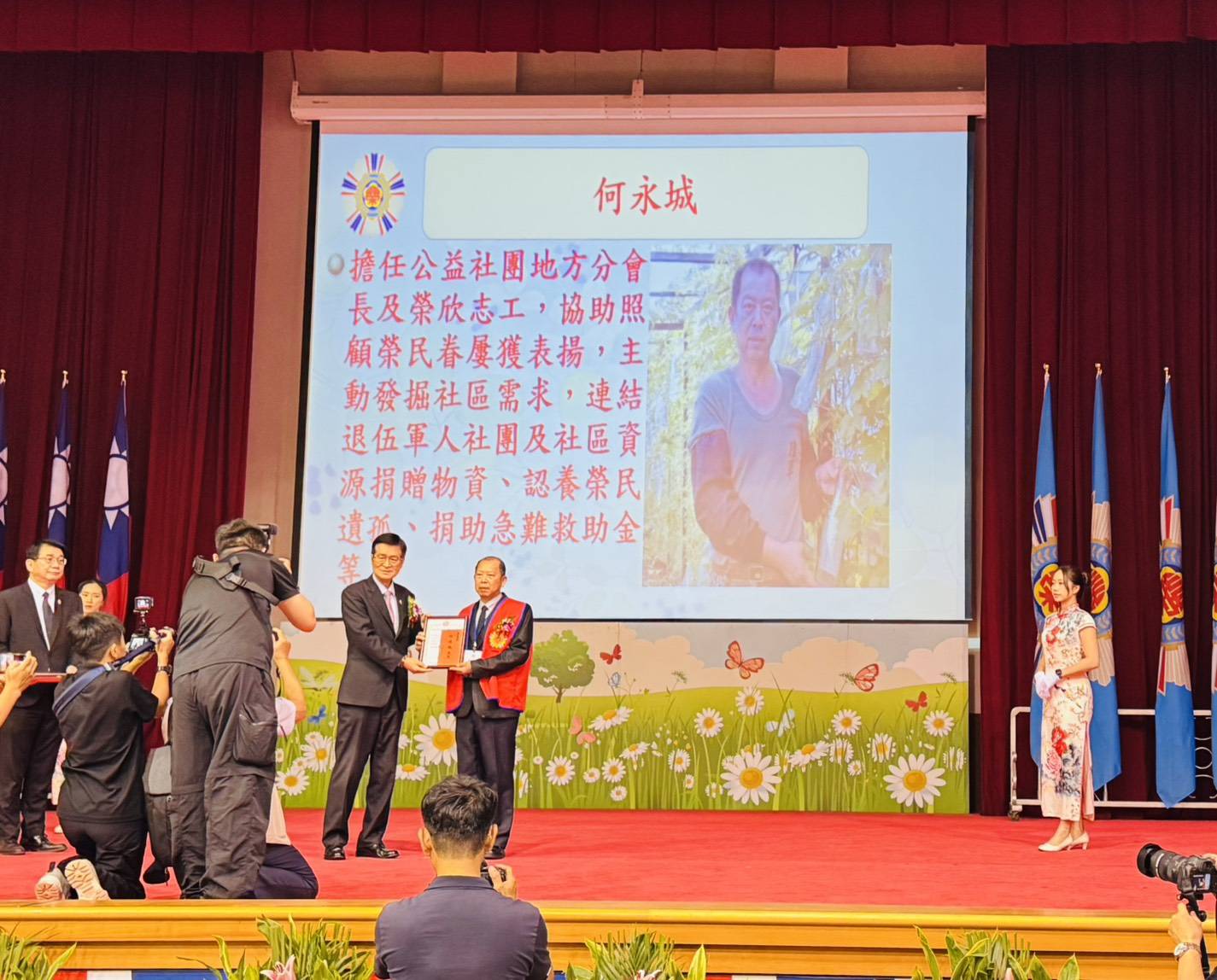 金門榮服處恭賀榮民何永城榮獲輔導會榮民楷模並頒獎牌