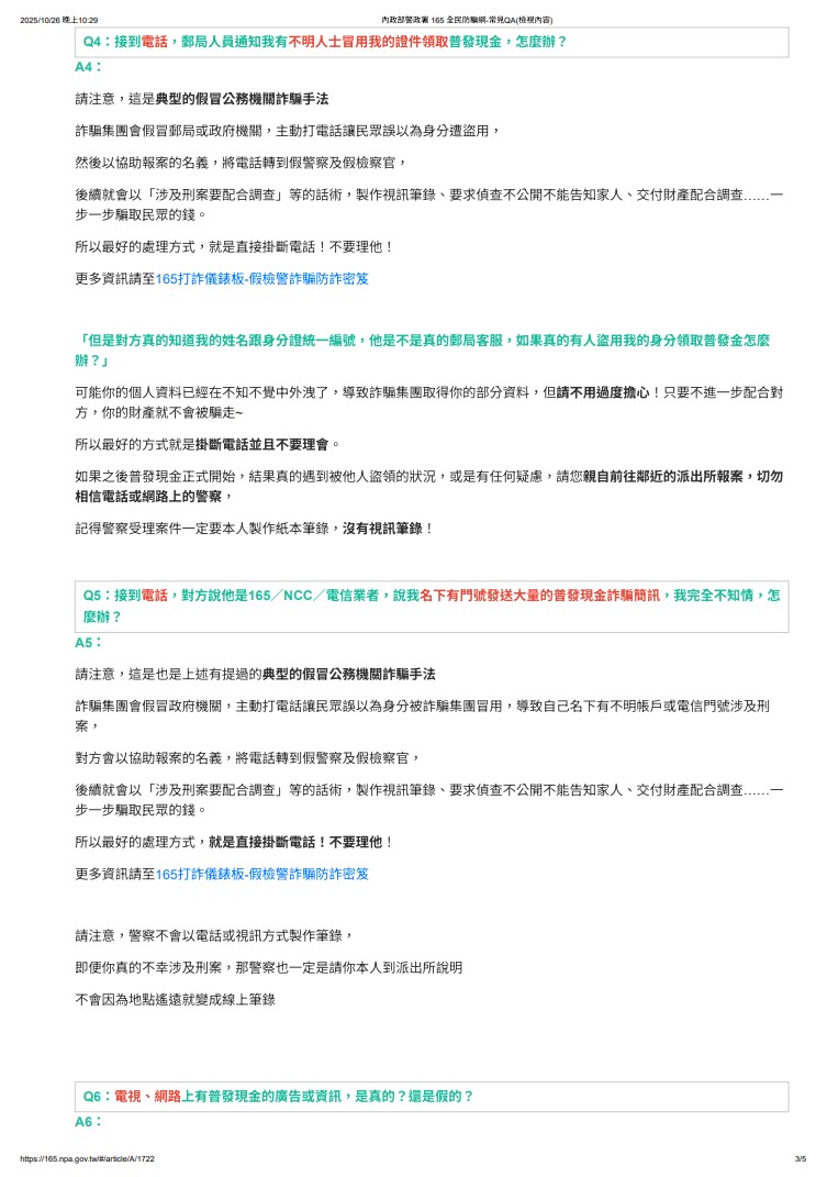 內政部警政署 165 全民防騙網「普發萬元」防詐騙宣導內容3