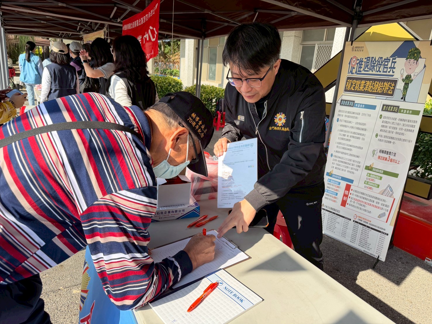 金門縣榮民服務處於23日參與金門縣政府主辦的「114年金門縣移民節多元文化活動」,由副縣長李文良蒞臨主持,在熱鬧的展演、市集與闖關體驗中,向超過500名新住民家庭與鄉親宣導各項照顧政策。服務處於現場設置諮詢攤位,介紹榮民及其眷屬可運用的就學補助、就業服務與職訓資源,協助民眾了解升學補助、職涯培訓、創業輔導及就業媒合等多元協助措施。 活動以「幸福金門、多元共融」為主題,融合新住民文化展演、異國市集與親子闖關,使民眾在體驗文化的同時,也能獲得實用的政策資訊。榮服處強調將持續與地方機關合作,透過多元文化活動走入社區,讓更多鄉親認識榮民照顧制度,共同營造友善包容、支持家庭的金門生活環境。