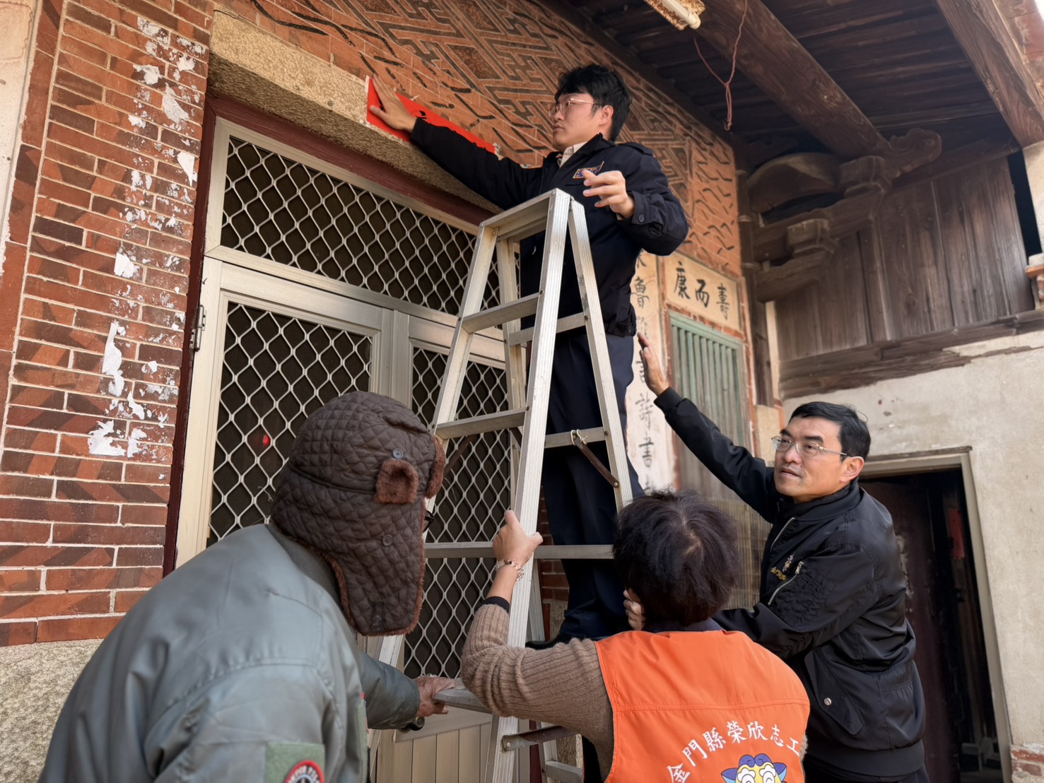 金門榮服處攜手榮欣志工貼春聯 送暖年長獨居榮民迎新春
