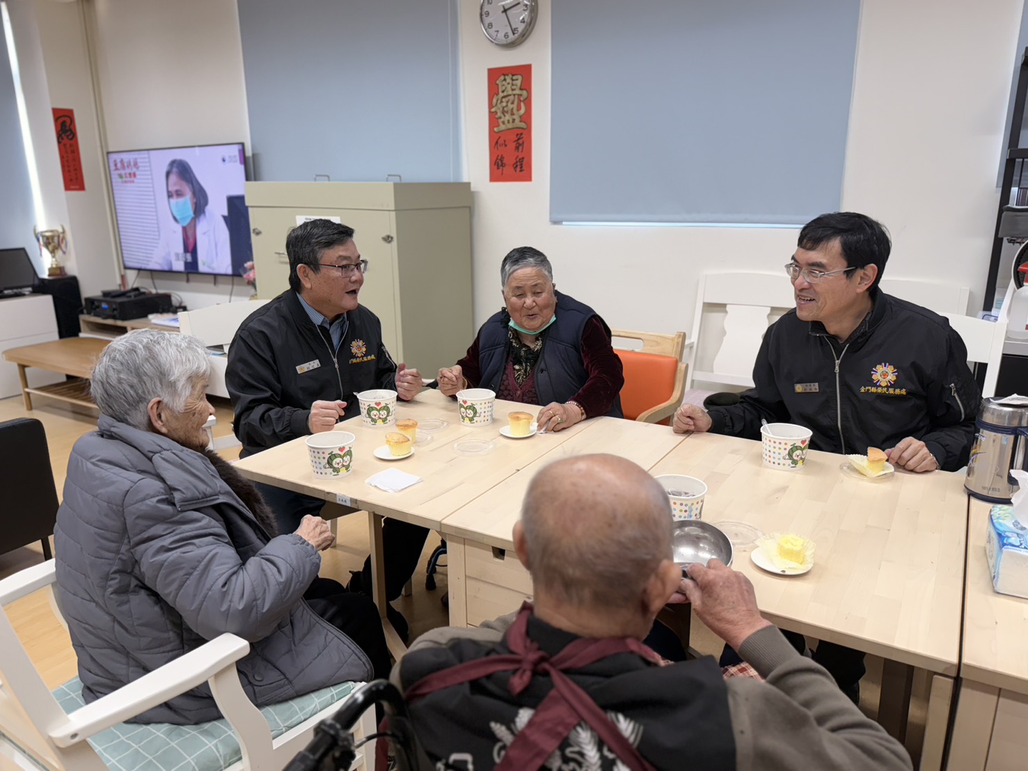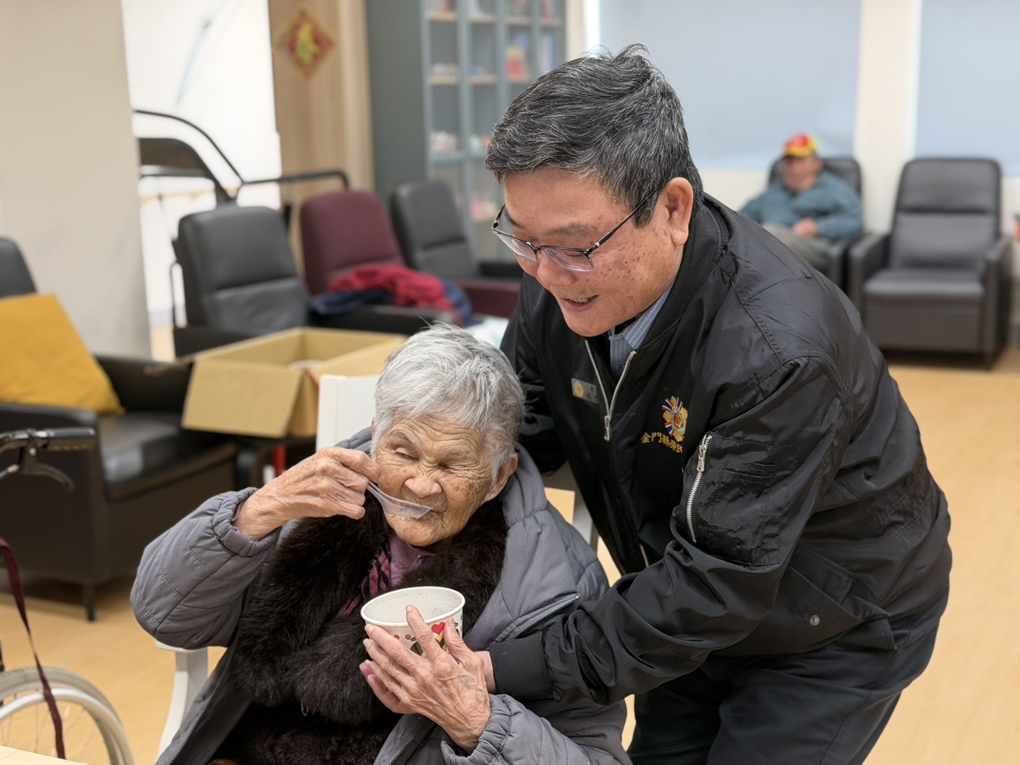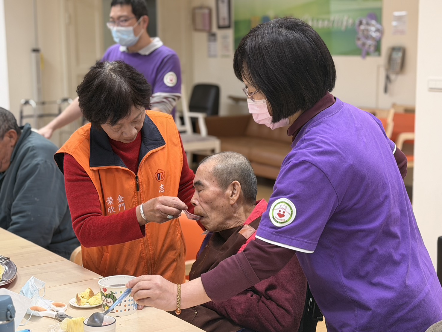 為關懷長者身心健康,金門縣榮民服務處金沙志工隊前往蜻蜓日照中心舉辦「暖心下午茶」活動,由劉信義處長率彭致和副處長、志工承辦人及替代役男到場陪伴長者,共度溫馨午後時光。 活動現場氣氛溫馨熱絡,長者們在志工陪伴下互相交流、笑聲不斷。黃秀英隊長率志工親自烹煮香甜紅豆湯圓,並準備符合長輩口感的蛋糕,讓長者在品嘗美食之餘,也感受到滿滿的關懷。蜻蜓日照中心負責人盧璧珍女士與同仁全程協助活動,並貼心將湯圓剪成小塊,方便長輩安心享用。黃秀英隊長表示,透過輕鬆的下午茶聚會,不僅能促進長者交流,也讓志工與長者建立更深厚的情感連結,真正落實「關懷零距離」。活動中,替代役男與志工們亦協助長者入座及端送湯圓,劉信義處長逐桌與長者話家常、關心生活與健康,現場洋溢溫馨融洽的氛圍。 劉信義處長表示,榮服處未來將持續結合志工力量與社會資源,與榮欣志工隊攜手推動多元關懷活動,不僅陪伴榮民眷及長者安心度過各個重要節日,也持續關注長者日常生活與身心健康需求,提供更貼心完善的服務。他強調,透過此類溫馨活動,不僅能讓長者感受到社會各界的關懷與支持,也讓志工在服務過程中獲得滿滿的成就感與幸福感,共同營造充滿愛與關懷的友善社區,讓溫暖與善意在金門持續傳遞。 相關照片