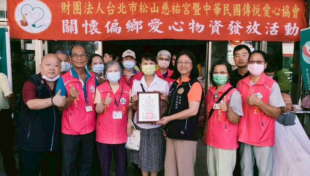 中秋佳節即將來臨,南投縣榮民服務處為擴大榮民眷服務照顧層面,連結財團法人台北市松山慈祐宮所屬「中華民國傳悅愛心協會」,日前假埔里鎮南投縣綜合性身心障礙福利服務大樓,由榮服處羅婷婷副處長帶領榮欣志工埔里隊,偕同傳悅愛心協會領隊何師姐及眾師兄姊辦理秋節物資捐贈及發放活動,陳副處長並代表榮服處致送傳悅愛心協會感謝狀,表達對該協會多年來長期提供各式愛心物資,嘉惠地區有服務需求榮民(眷)感謝之意。 慈祐宮與傳悅愛心協會多年來與南投縣榮服處合作,共同關懷埔里、國姓地區榮民眷戶。當日埔里鎮大家長廖志城鎮長也親自到場,除感謝協會每年分別於春、秋兩次節前於埔里鎮發送愛心物資,嘉惠生活清苦鎮民,也對南投縣榮民服務處人員協助物資發放,表達慰勉之意。 羅副處長偕同地區服務幹部、榮欣志工等一行,於現場協助年邁榮民眷領取物資,另為身障行動不便之榮眷謝女士、林女士親送物資到府,領到物資的榮民(眷)紛紛對協會的愛心表達感謝,長輩們在感受到榮服處對他們的關懷,感動的心情溢於言表。 羅婷婷副處長表示,藉由秋節前物資發放活動,照顧榮民眷家庭,以溫暖關懷照亮社會各個角落,榮服處會對生活困境榮民眷,在每年民俗節慶前持續關懷,瞭解服務需求,適時協助給予幫助,讓榮民眷都歡喜過節。