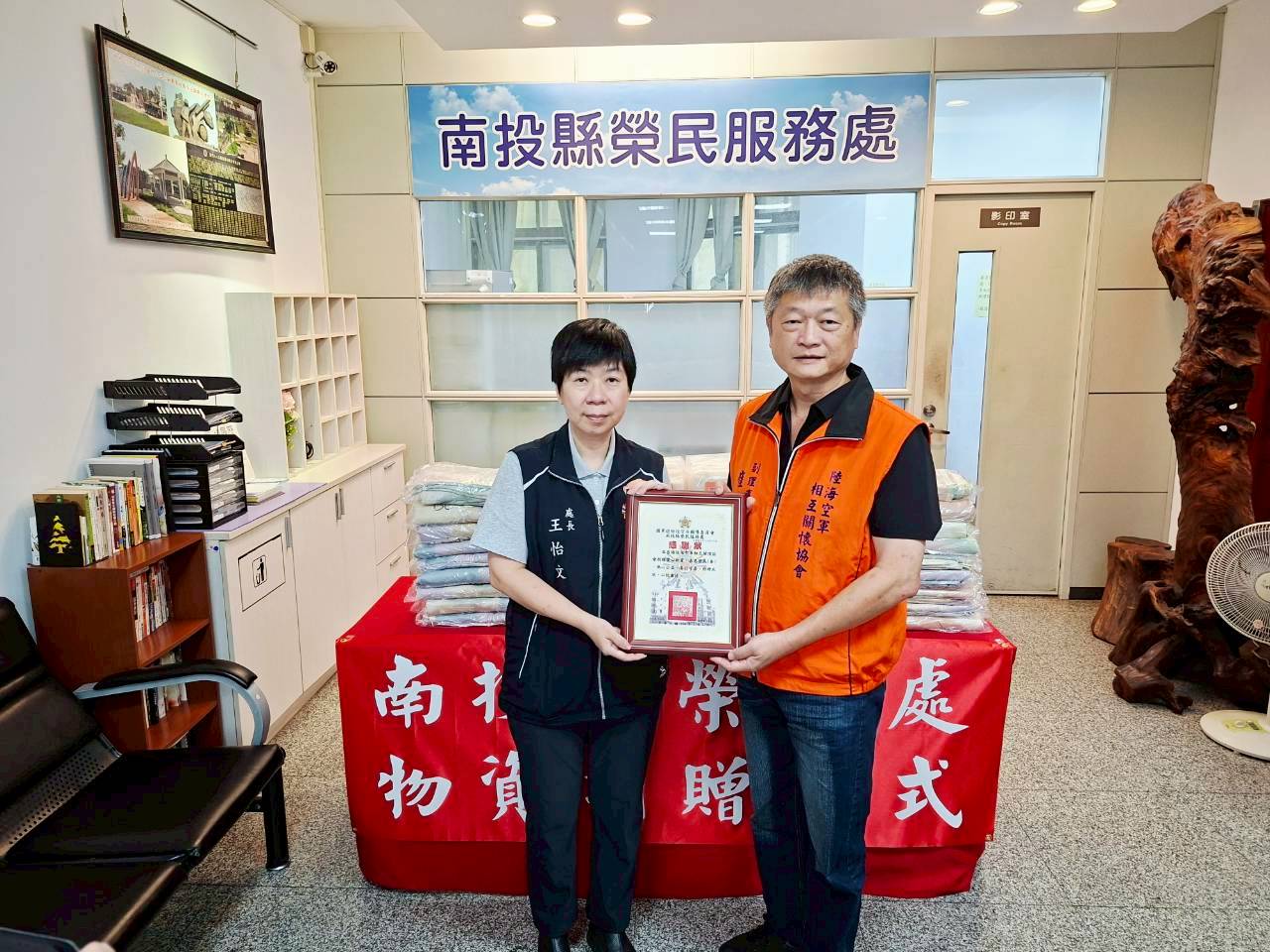 南投縣榮民服務處於今(17)日舉行「陸海空軍相互關懷協會」愛心物資捐贈儀式,由副理事長崔景惠偕同多位幹部親自出席,並捐贈遺孤認養金及大米等物資,盼能以實際行動關懷南投地區清寒榮民眷,讓溫暖在歲末時節持續蔓延。王怡文處長代表受贈,並致贈感謝狀以表達對協會長期投入公益的敬佩與謝意。 相關照片