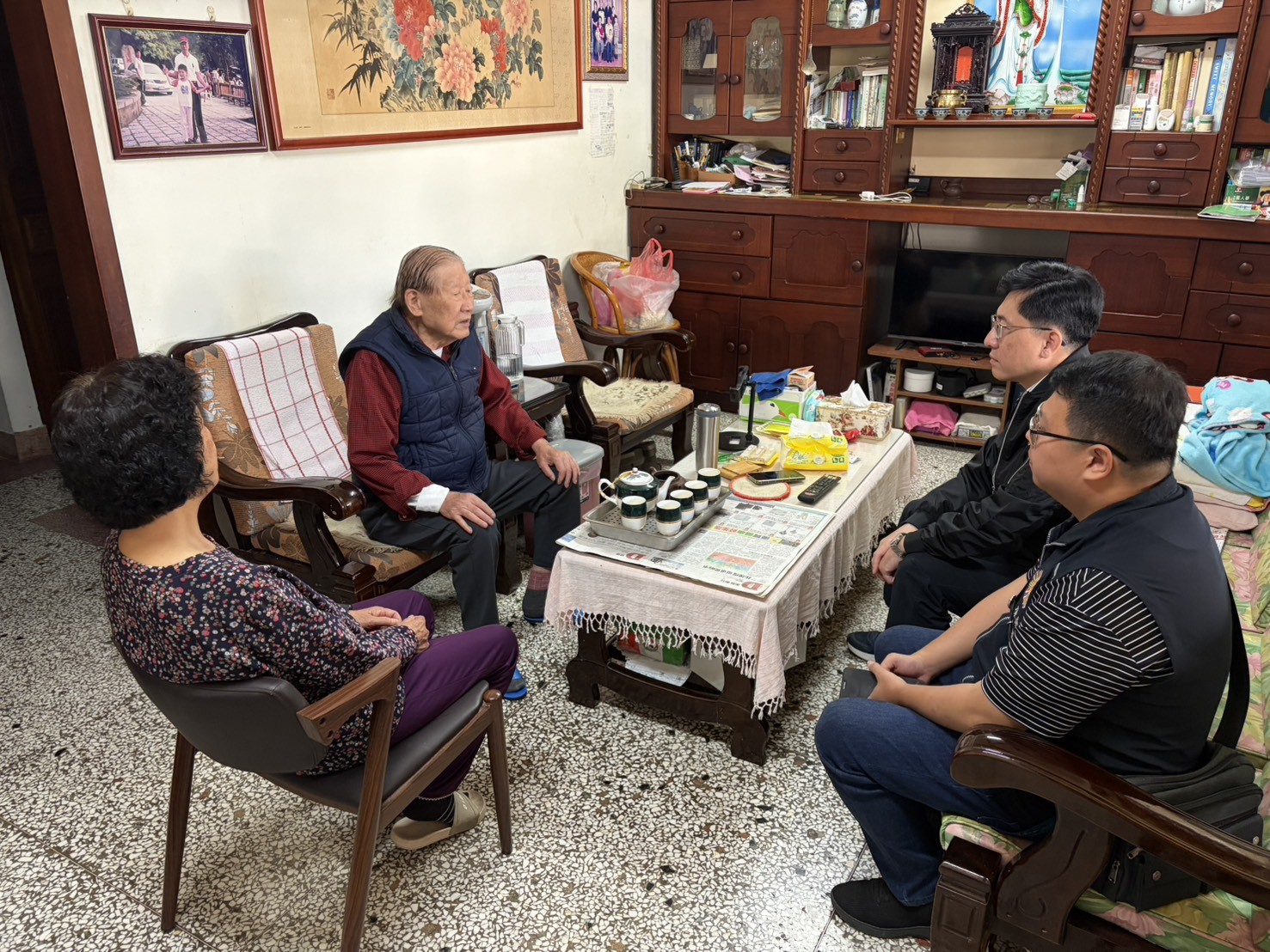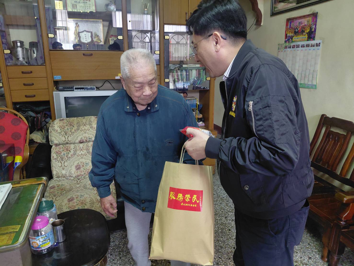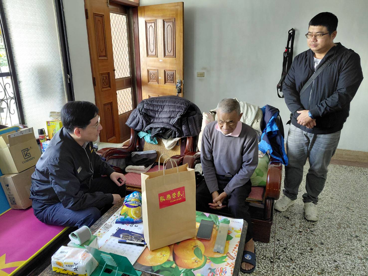 近日氣候多變,早晚氣溫明顯偏低,為讓高齡榮民感受溫暖關懷,南投縣榮民服務處吳瑞得總幹事日前偕同責任區輔導員及社區服務組長,前往草屯鎮及信義鄉關懷探視高齡獨居榮民及雙老同住家庭,關懷長輩健康狀況、實施防詐宣導、提供入住榮家及榮院就醫綠色通道資訊,並提供生活物資,傳遞榮服處對高齡榮民長輩的關懷。