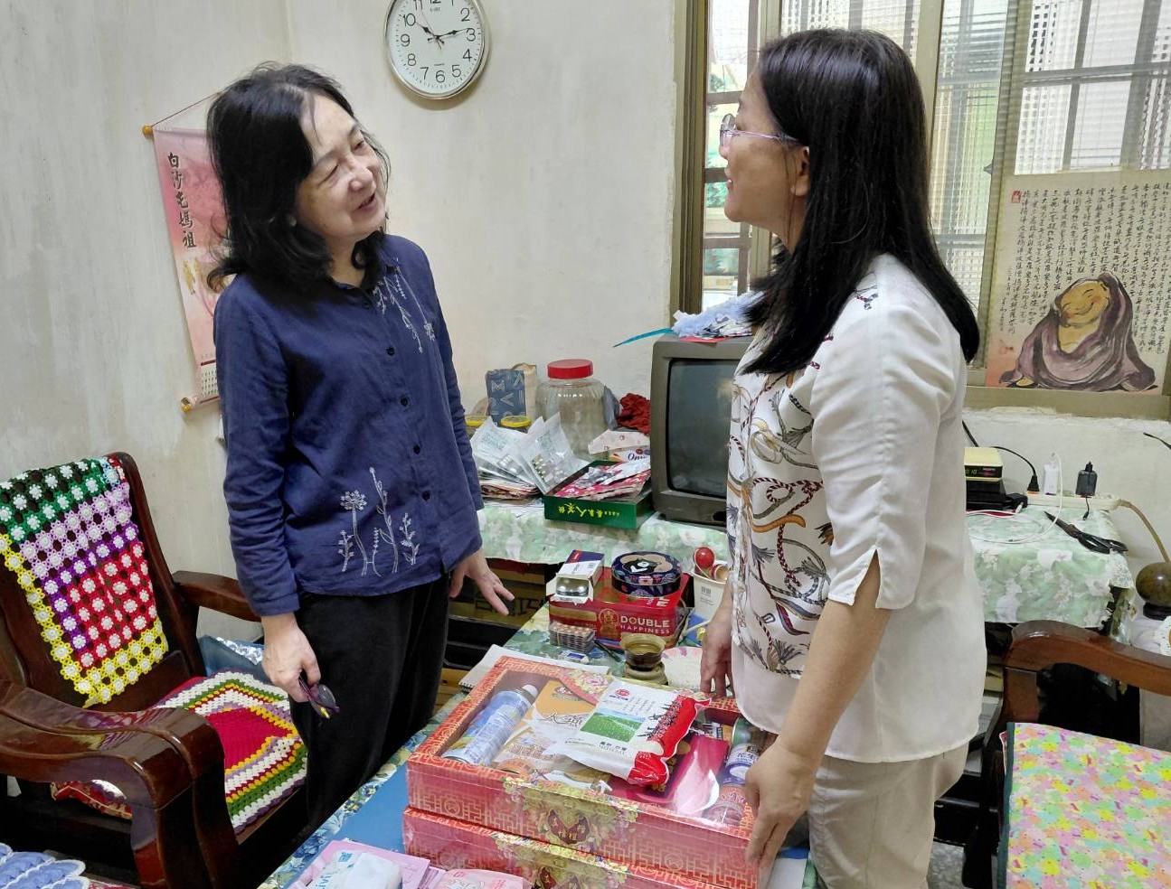 南投縣榮民服務處副處長羅婷婷今(14)日偕同責任區輔導員及社區服務組長帶著善心物資,探視草屯地區高齡榮民眷家庭,除關懷長輩居家生活及健康狀況,並提供入住榮家、榮院就醫綠色通道資訊、實施防騙宣導,傳遞榮服處關懷照顧之意。