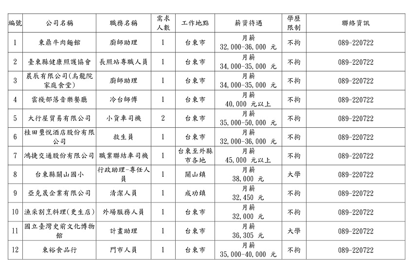 發布日期:115-01-20 資料來源:臺東縣榮民服務處 【臺東榮服處】廠商職缺表_115.01.20 附件下載 檔案名稱 更新日期 下載次數 【臺東榮服處】廠商職缺表_115.01.20.pdf 115-01-20 8