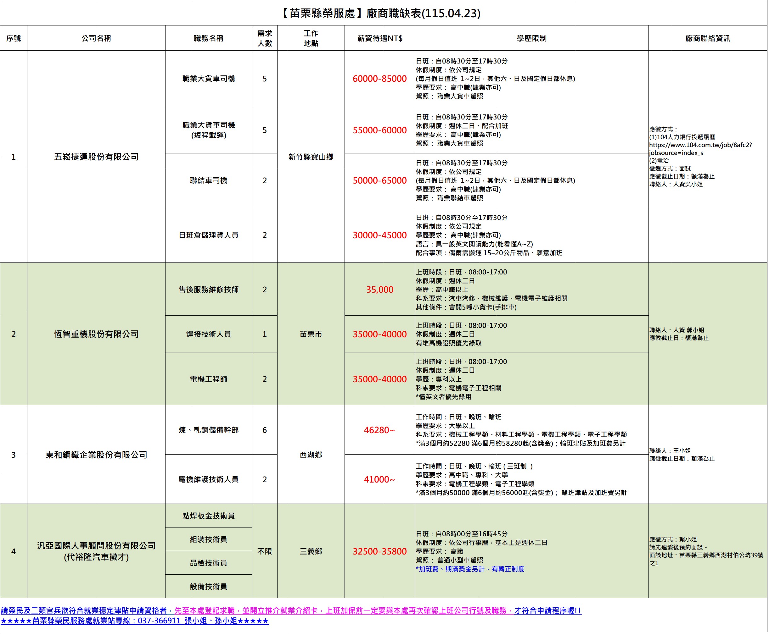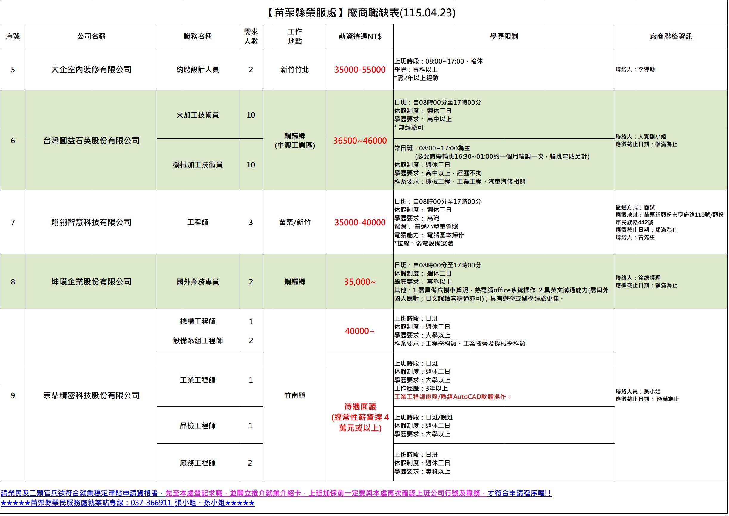 | 苗栗縣榮服處 廠商職缺表 1150423.pdf | 115-04-22 | 5 |