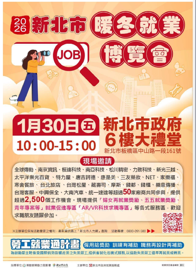 2026新北市暖冬就業博覽會-新北市政府6樓大禮堂
