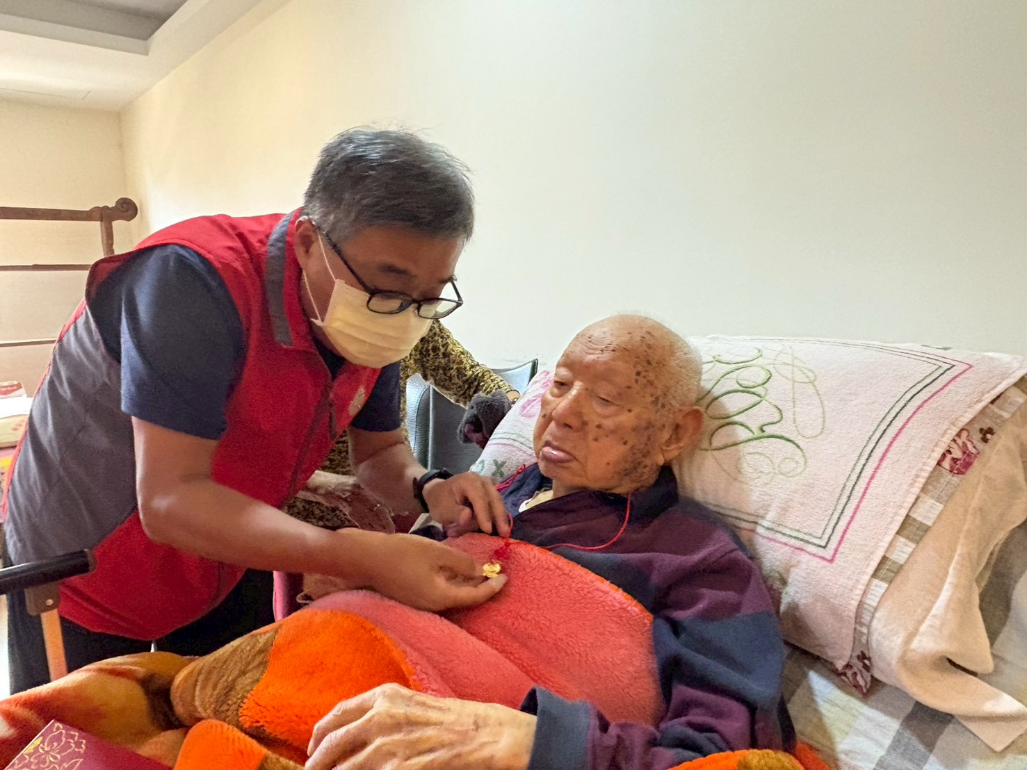 新北市榮民服務處副處長李毓錫於2日帶領輔導員及社區服務組長,前往新莊區探視多位高齡榮民,實際了解長者健康狀況與生活需求,並依個別情形協助連結相關資源,展現輔導會持續守護榮民的溫暖行動。 訪視團隊來到 97 歲湯爺爺家中,湯爺爺高齡,視力與聽力逐漸退化,且近期身體微恙。榮服處除定期提供生活物資,也協助申請輔導會遠距居家照顧系統,提升居家安全。李副處長於現場親自測試系統、確認運作正常,並細心關懷其日常起居,盼在突發狀況時能即時提供協助,湯爺爺對榮服處無微不至的持續關懷表達感謝。 接著探望 92歲、曾參與古寧頭與八二三戰役的王奶奶。王奶奶平時保持每日散步習慣,積極維持健康。她見到榮服處同仁來訪非常開心,並分享從軍及作戰的生命故事,神采奕奕,展現堅毅與樂觀的生命力。王奶奶的女兒全程陪伴,看到母親展露笑容,侃侃而談過去軍旅生涯,既感動又安心,頻頻向榮服處致謝。 最後,團隊前往探視百歲榮民夏爺爺,並代轉贈輔導會金飾壽桃,向他獻上最誠摯的祝福。夏爺爺與妻子相伴多年,子女也常返家探望,日常由外籍看護協助照料。他對榮服處長期的關懷與支持深表感謝。 林振生處長表示,榮服處將持續透過訪視機制,協助長者申裝遠距居家照顧系統、連結長照與生活資源,期盼高齡榮民能在熟悉的社區中獲得安心照護。榮服處也提醒,近期普發現金政策上路,詐騙手法增加,若遇可疑情況可立即向 165 或榮服處查證,以免受騙。 相關照片