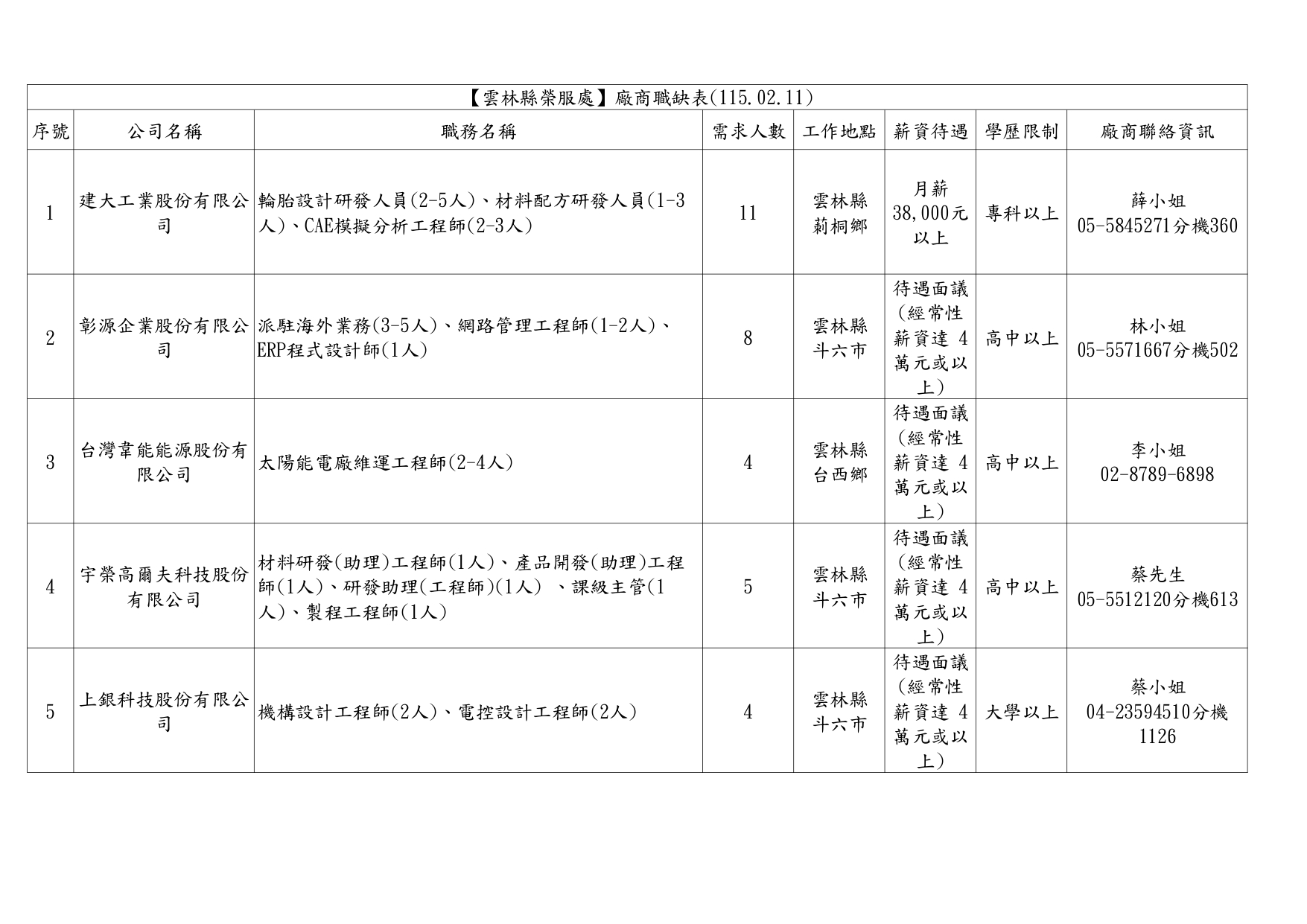 | 【雲林縣榮服處】廠商職缺表(115.02.11)+.pdf | 115-02-11 | 7 |