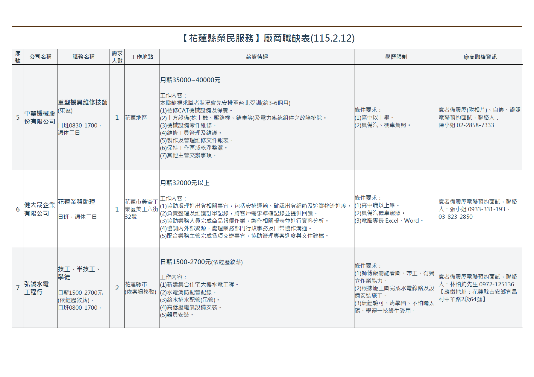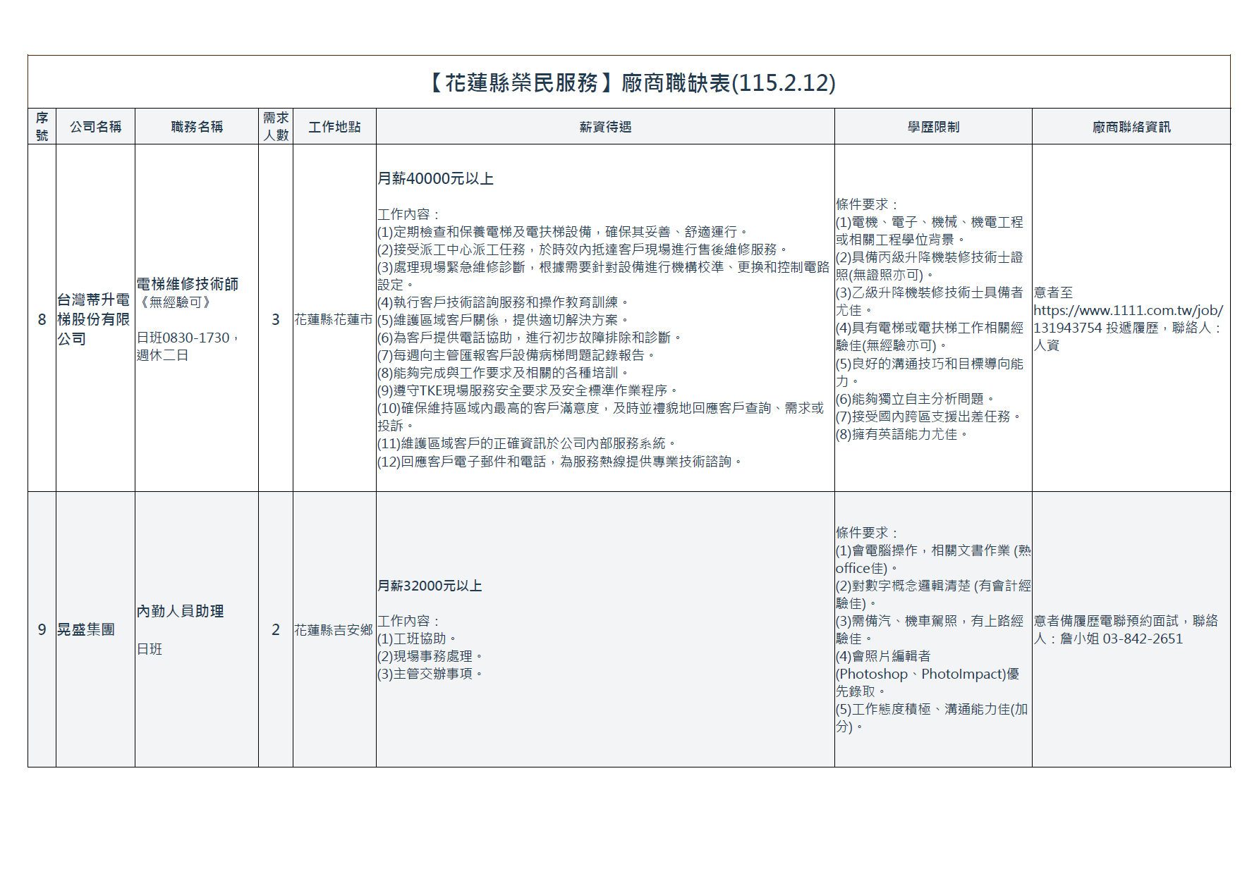 | 【花蓮縣榮民服務處】廠商職缺表(115.2.12).pdf | 115-02-12 | 8 |