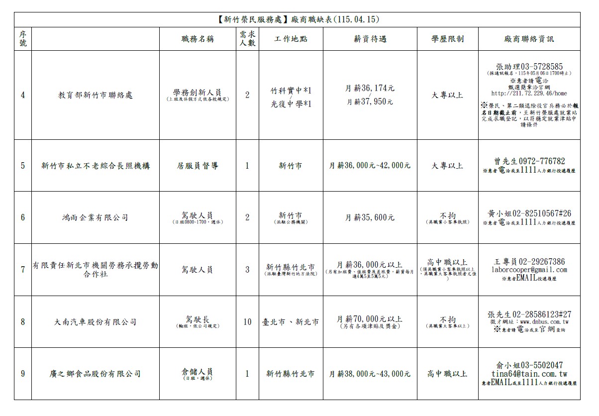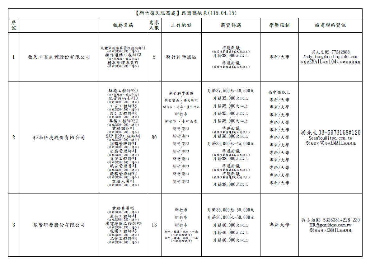 發布日期:115-04-15 資料來源:新竹榮民服務處 新竹榮服處廠商職缺表(115.04.15)【新竹榮服處】廠商職缺表(115.04.15) 相關照片 新竹榮服處廠商職缺表(115.04.15)-1 附件下載 檔案名稱 更新日期 下載次數 新竹榮服處廠商職缺表(115.04.15)--1.pdf 115-04-15 8