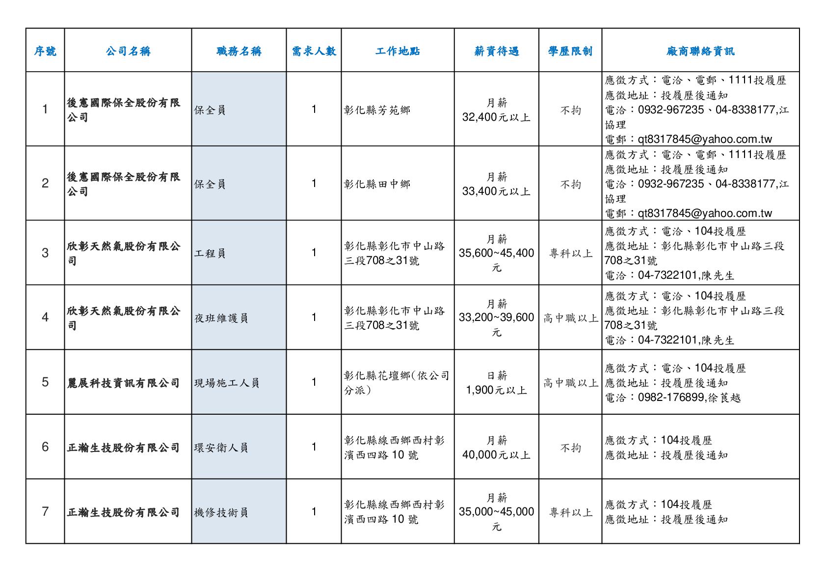 【彰化縣榮服處】廠商職缺表(114.10.09).pdf | 114-10-09 | 6 |