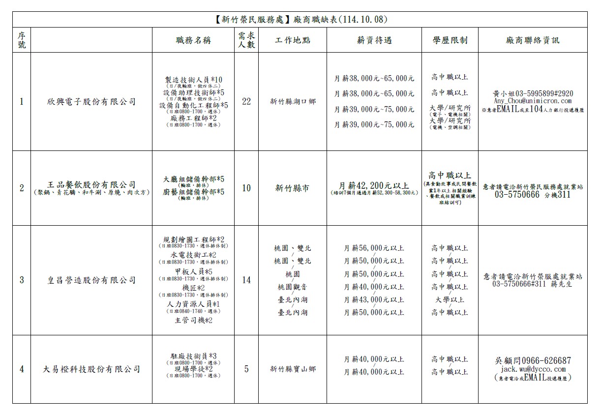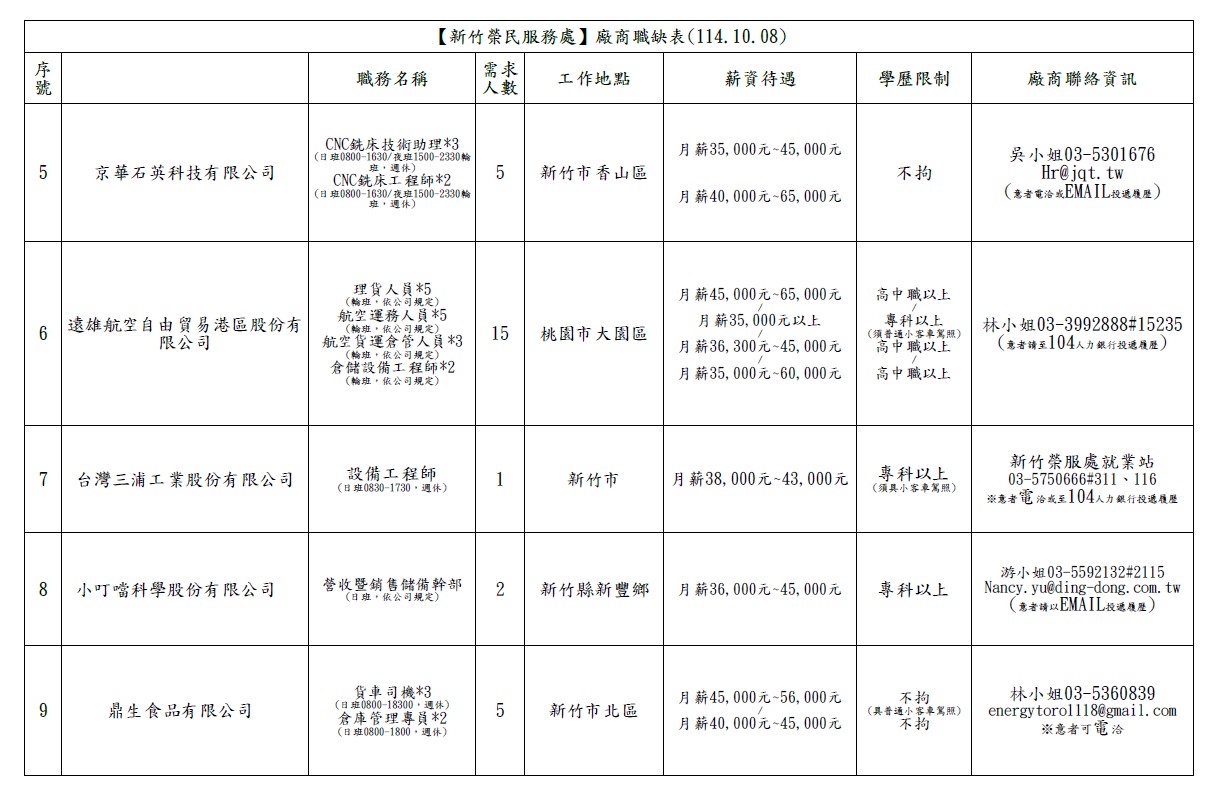 發布日期:114-10-08 資料來源:新竹榮民服務處 新竹榮服處廠商職缺表(114.10.08)【新竹榮服處】廠商職缺表(114.10.08) 相關照片 新竹榮服處廠商職缺表(114.10.08)-1 附件下載 檔案名稱 更新日期 下載次數 新竹榮服處廠商職缺表(114.10.08)--1.pdf 114-10-08 14