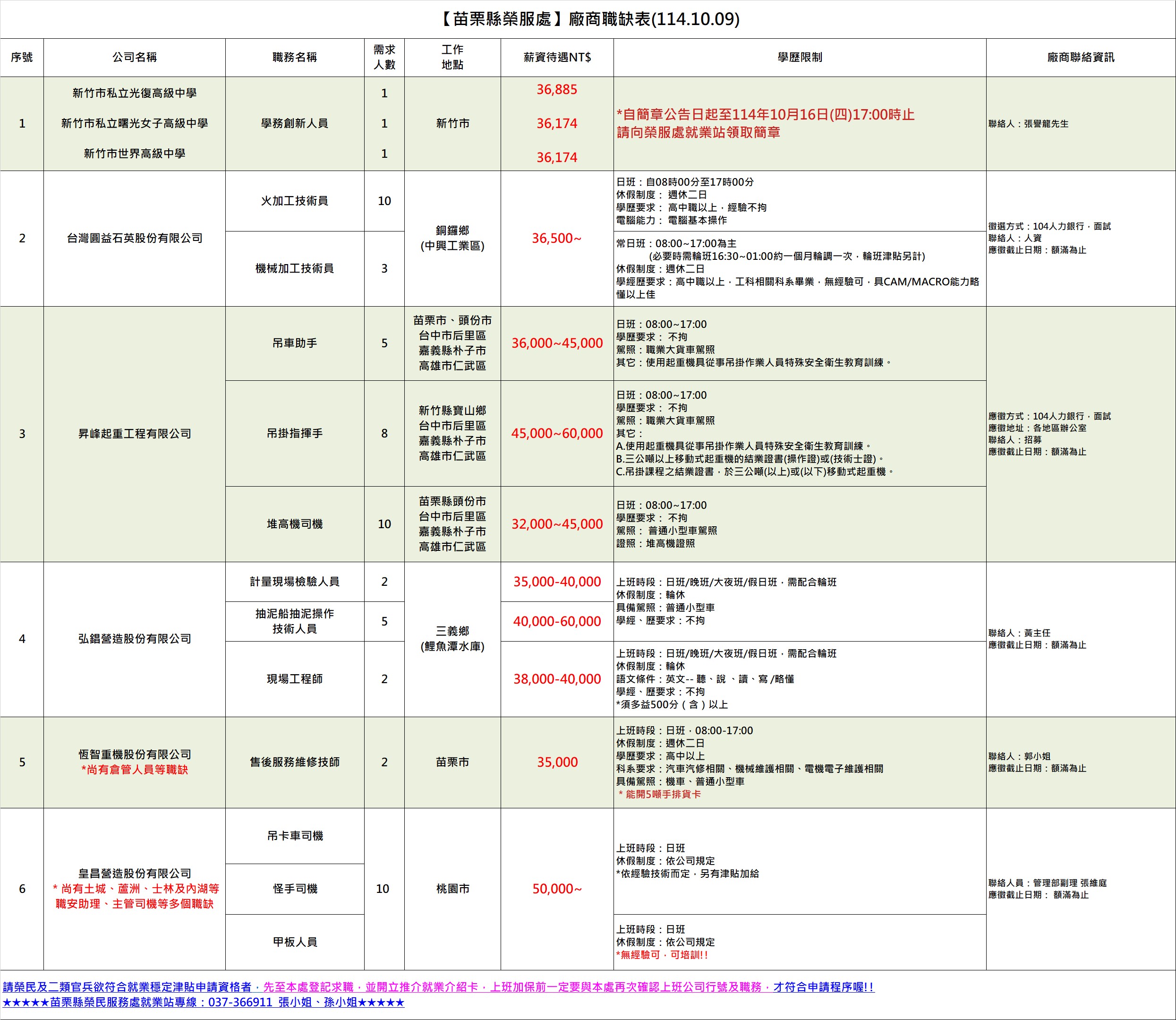 苗栗縣榮服處 廠商職缺表 1141009.pdf | 114-10-09 | 12 |