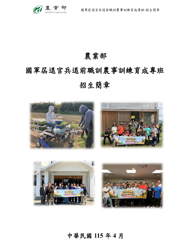 農業部115年度「國軍屆退官兵退前職訓農事訓練育成專班」招生資訊